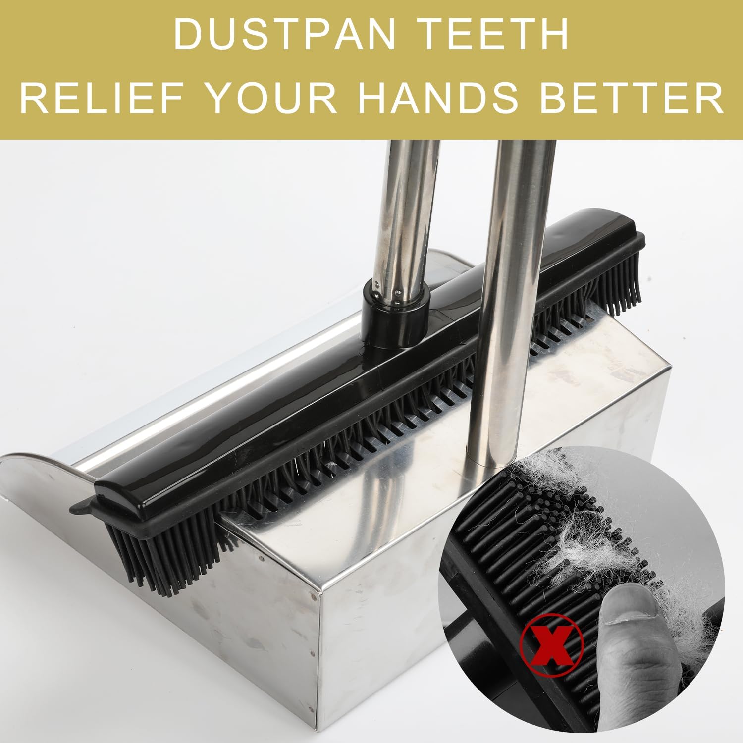 - 【Dustpan with Teeth】The dustpan is made of high quality stainless steel,which is very sturdy and durable.And the teeth on the top of the dustpan can collect hair/dust/lint, which usually wraps around the bristles.The dustpan also has a rubber lip and seamlessly sticks to the floor,you clean all trash and debris into the dustpan as you sweep.