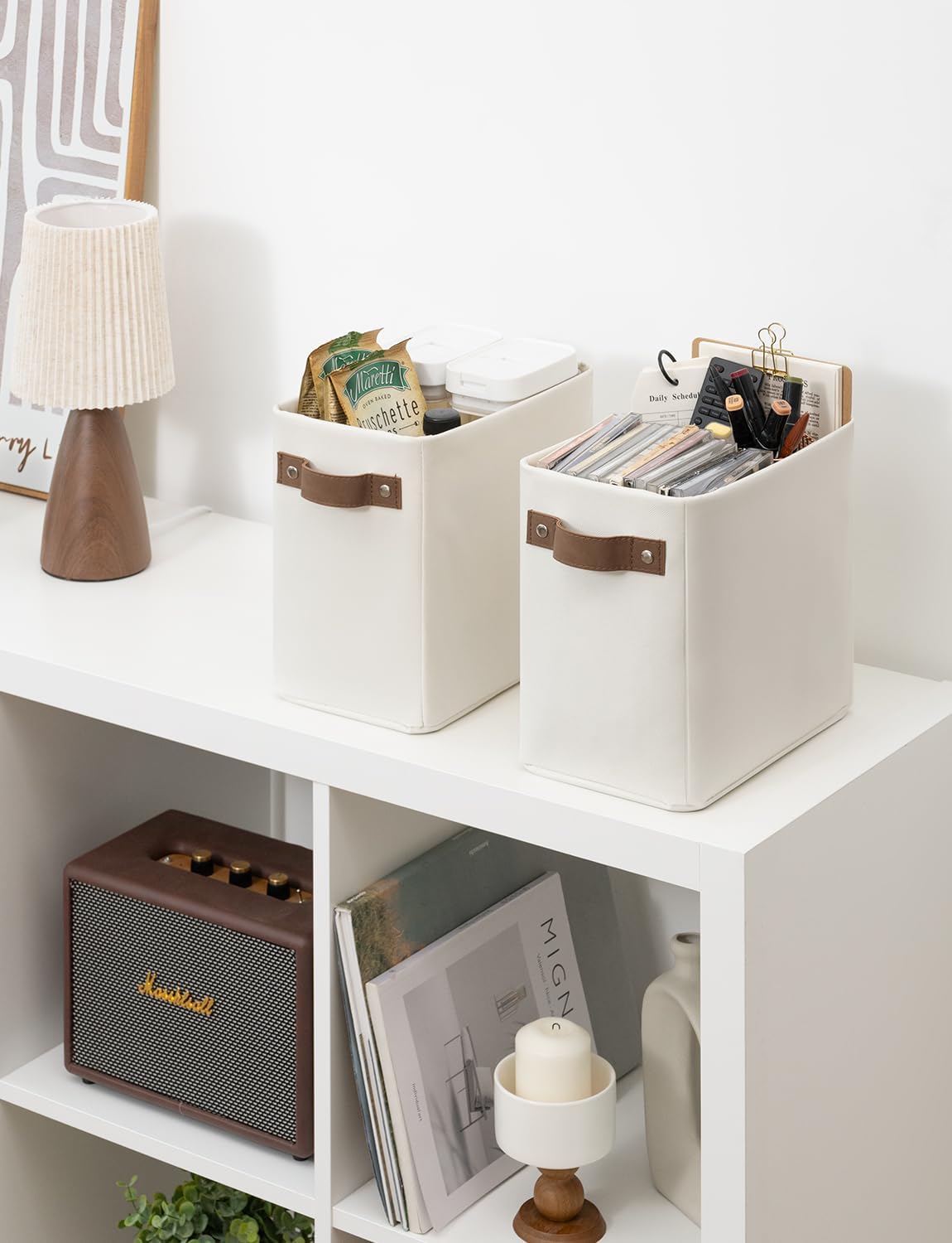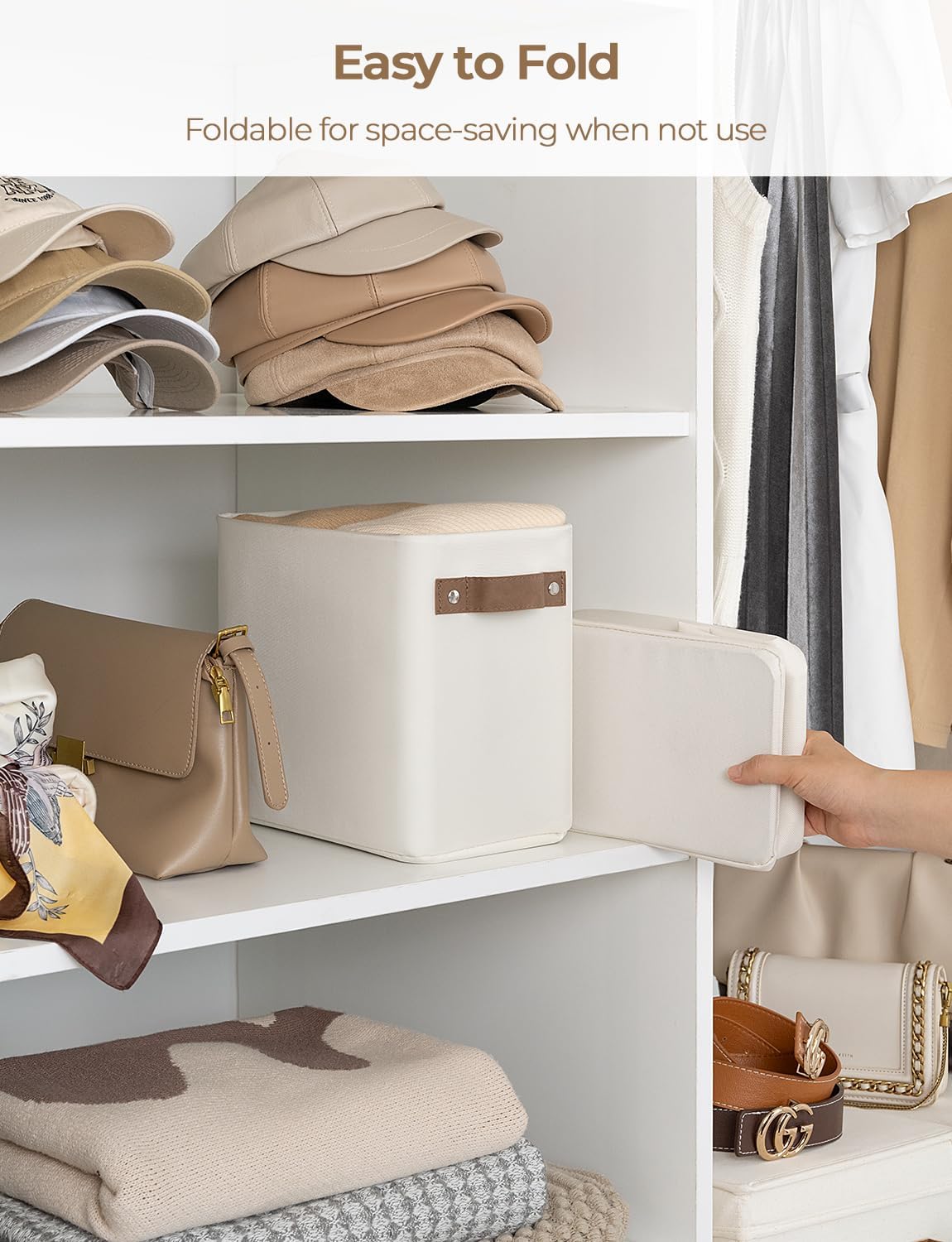 - Premium Materials: The storage basket is crafted from durable, thick fabric and features wide PU leather handles with rivet reinforcement, ensuring both strength and ease of movement to any desired location.