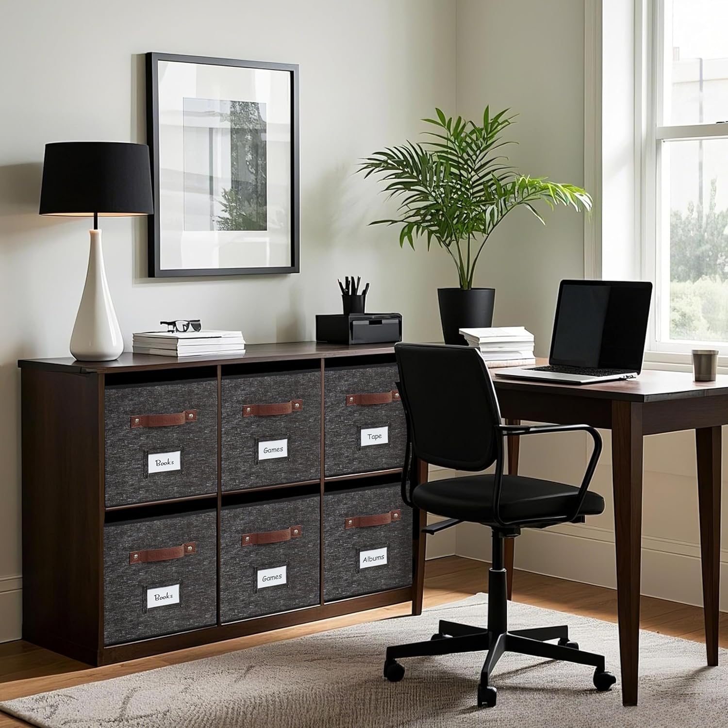 DECOMOMO Storage Bins, Cube Storage Bin with Labels, Fabric Storage Cubes for Shelves (10.5" x 11" / 6pcs, Black Pattern)