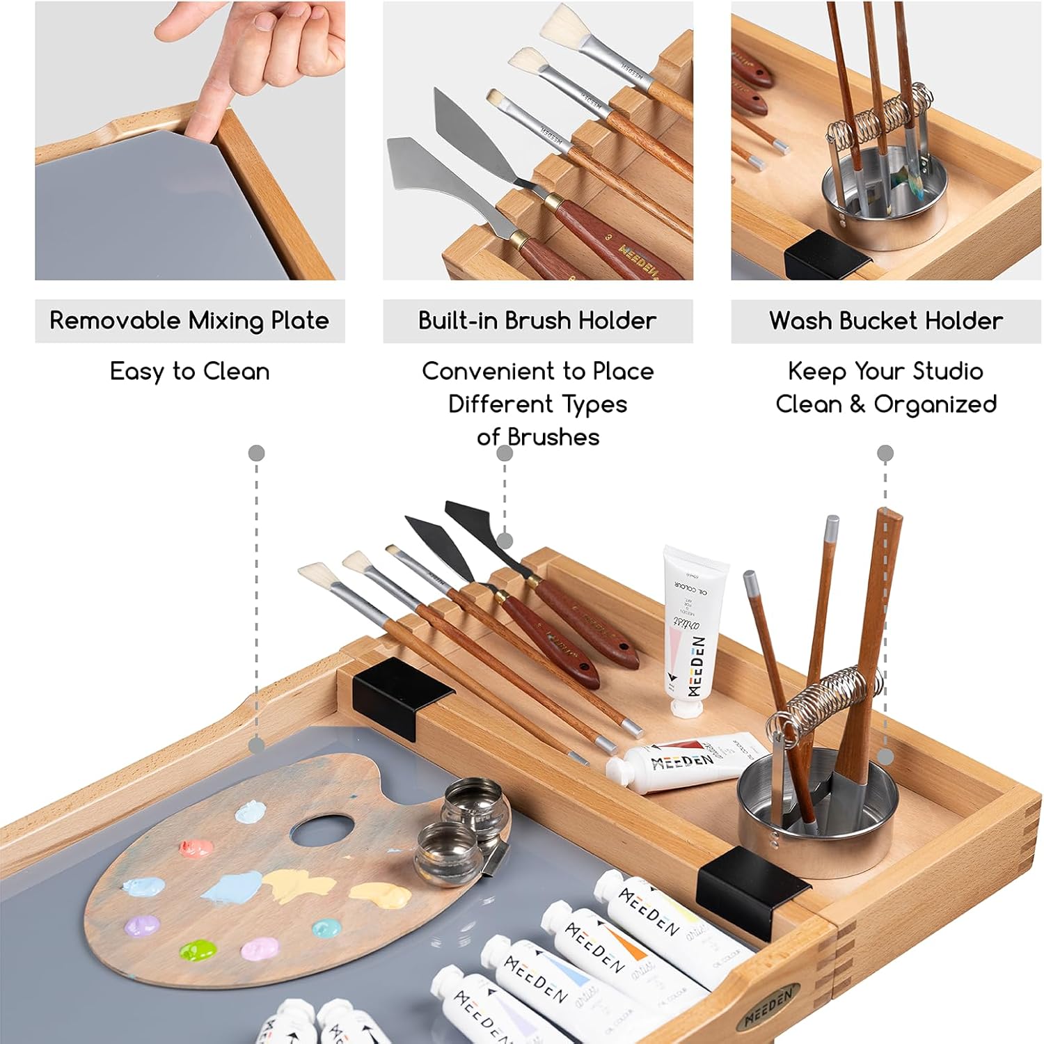 - Multifunctional Design: Come with a brush holder, store different kinds of brushes tidily. Unique round groove for inlaying brush washer, optimize creation space perfectly. Many functions in one, such as a practical and utility cart, deserve to have!