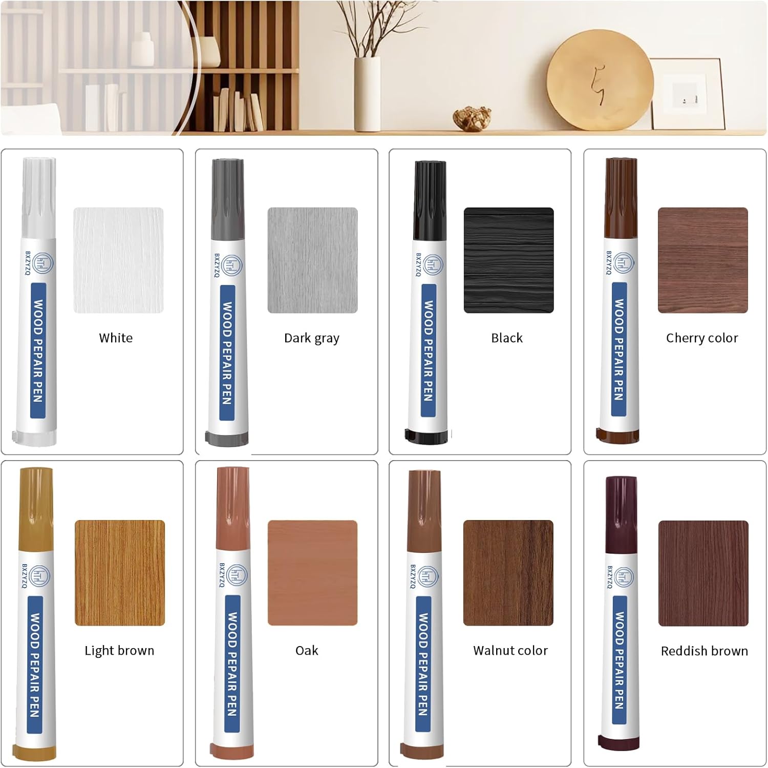 - Comprehensive Kit: Our wood filler kit includes 12 colors of wood filling materials, 8 color touch-up pens, 8 wax crayons, 5 brushes, 2 scrapers, and 1 mixing palette, providing all you need for wood furniture repair.