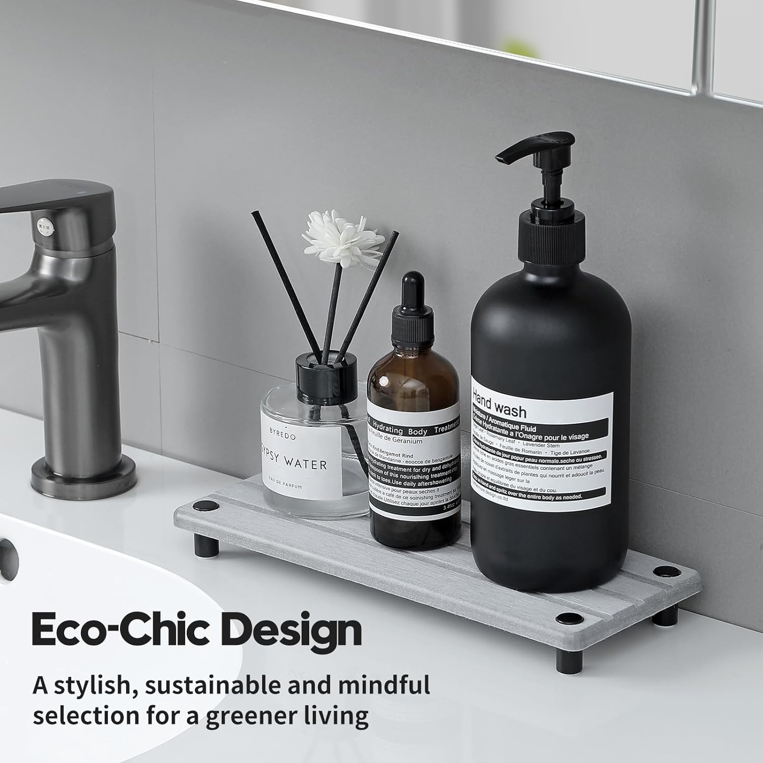 2 Pack Fast Drying Water Absorbing Diatomite Stone Mat Tray for Kitchen & Bathroom Counter - Instant Dry Sink Caddy Organizer - Vanity Holder for Soap, Sponge – Light Gray 10" x 4"