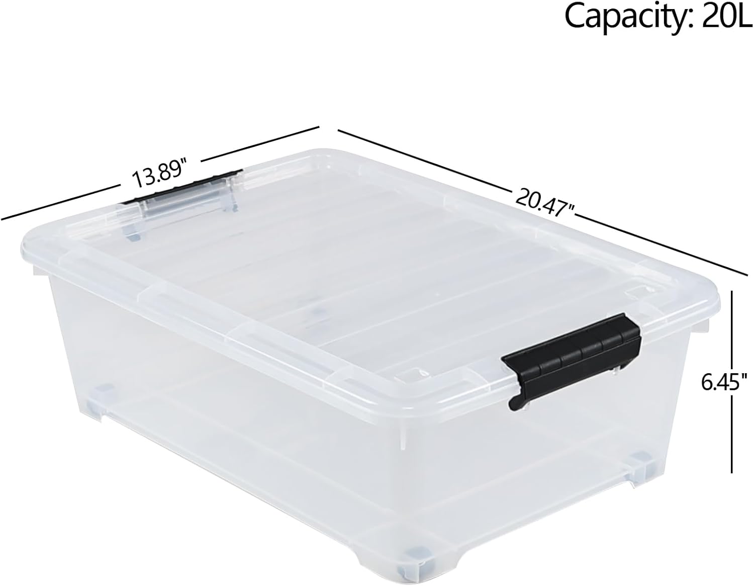 - One set contains 4 packs plastic under bed containers, each size: 20.47"(L) x 13.89"(W) x 6.45"(H)
