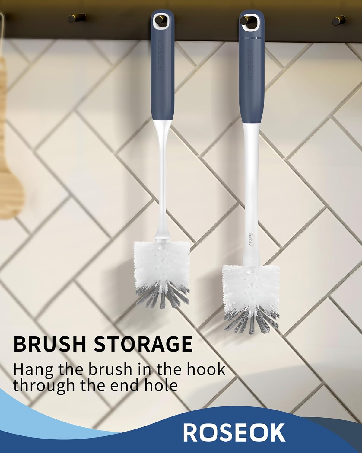 - EASY TO CLEAN AND HANG: The long handle bottle brush is 13.3 inch, easy to reach the bottom of bottles to clean the corner. The brush is also easy to clean, just rinse with water, and it can also be washed in the dishwasher. There's a hole at the end of the handle. You can hang it on the hook to dry after cleaning without taking up extra space in the kitchen.