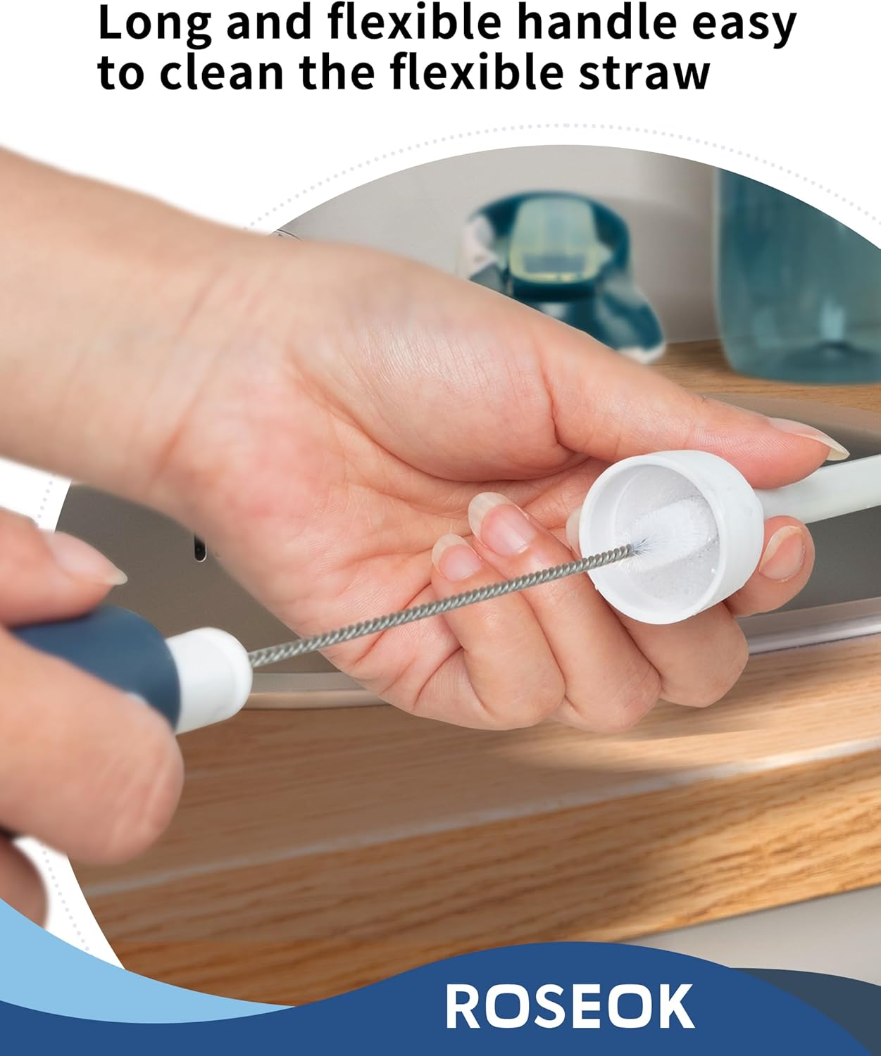 - TWO IN ONE: 2 in 1 bottle brush and straw brush designed with a 304 stainless steel straw brush stores in the larger one. Unscrew the end of thermoplastic rubber handle, there’s a 10.1 inch straw brush.The straw brush is long and flexible,so it can be used to clean the straw.