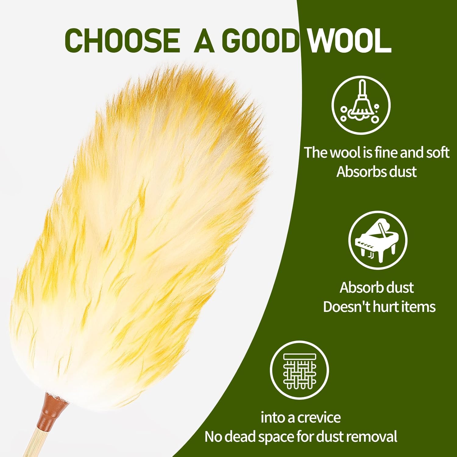 - Premium Natural Lambswool Fibers: Crafted with natural lambswool, the duster attracts dust statically without chemicals, ensuring thorough cleaning on delicate surfaces (e.g., glass, polished wood, electronics). Soft fibers prevent scratches and trap fine particles effectively