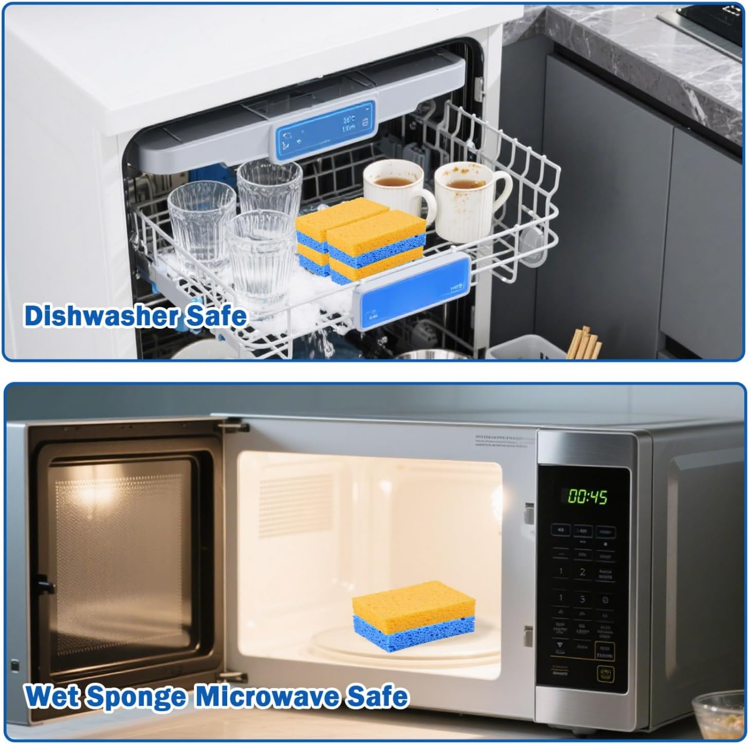 - Natural Sponges: The blue and yellow dish sponges kitchen pack is made from 100% wood pulp, fully biodegradable, and compostable