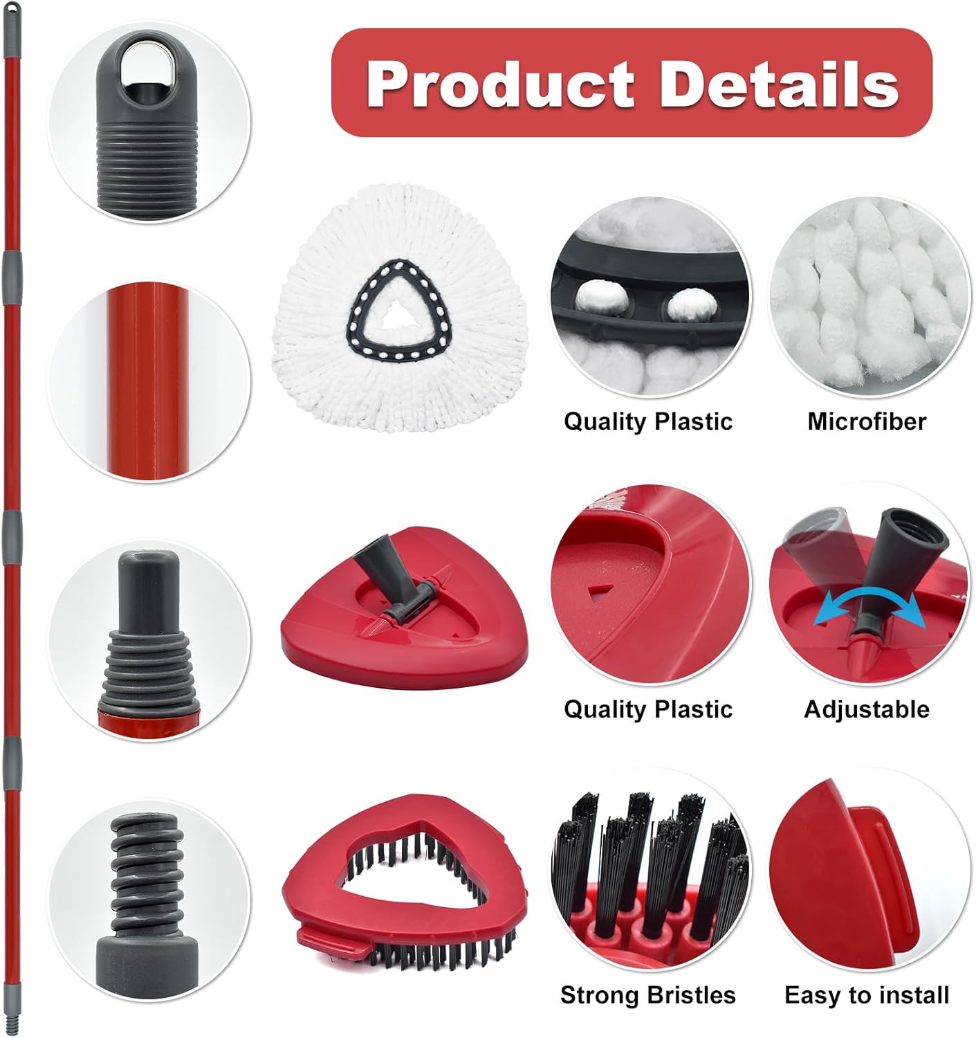 Mop Replace Head Mop Handle for O Cedar Mop, Mop Replacement for Ocedar Spin Mop Includes 2 Mop Heads Replacements 4-Section Mop Handle 1 Mop Base 1 Scrubber Mop Head for O-Cedar Spin Mop