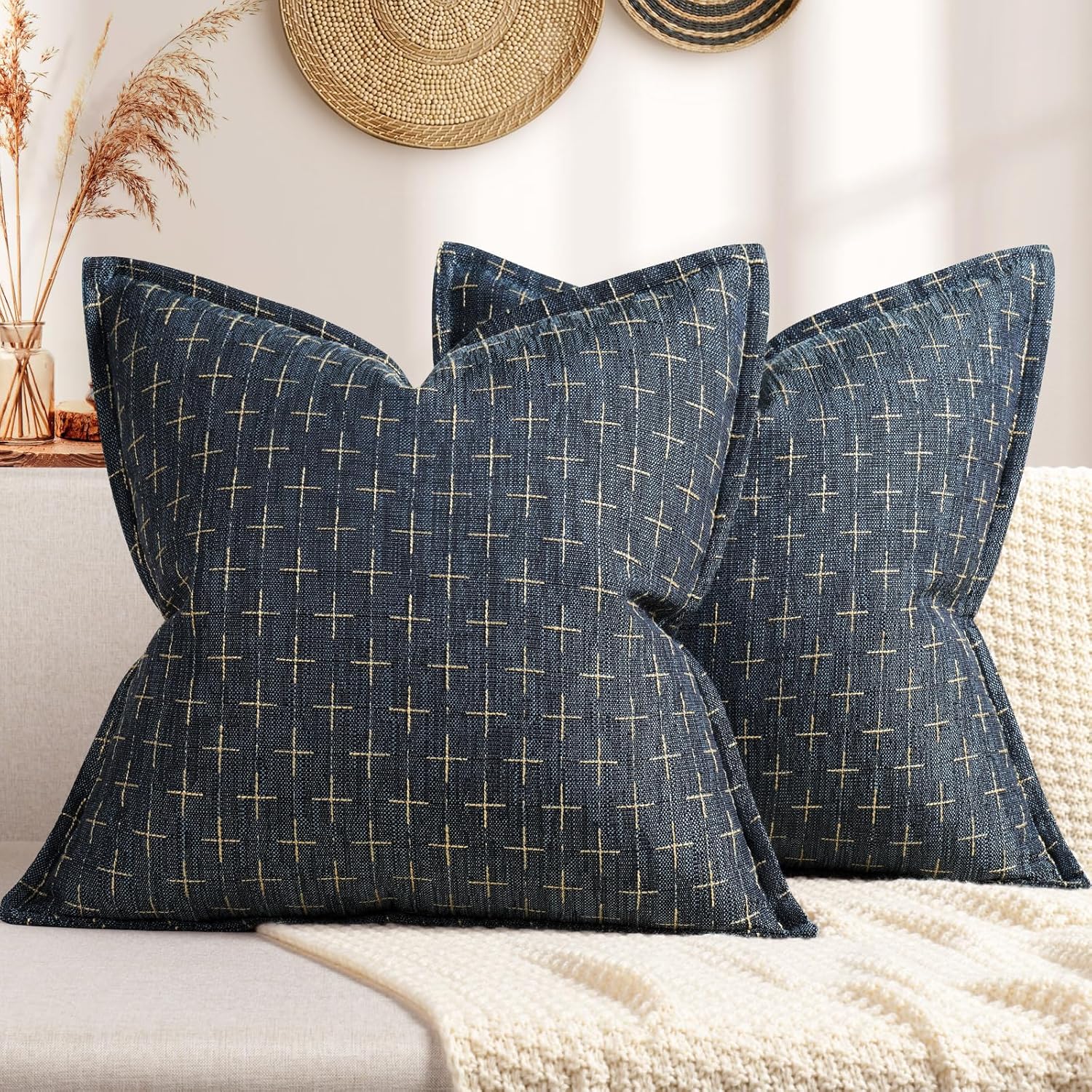 - 2.【Design with Flange Edges】This elegant pillow cover is designed with a flange at the edges. All fabric edges are meticulously sewn to prevent fraying and ensure lasting durability. The combination of the rich yarn-dyed jacquard fabric and the classic edge detail adds a sophisticated and refined touch to your home decor.