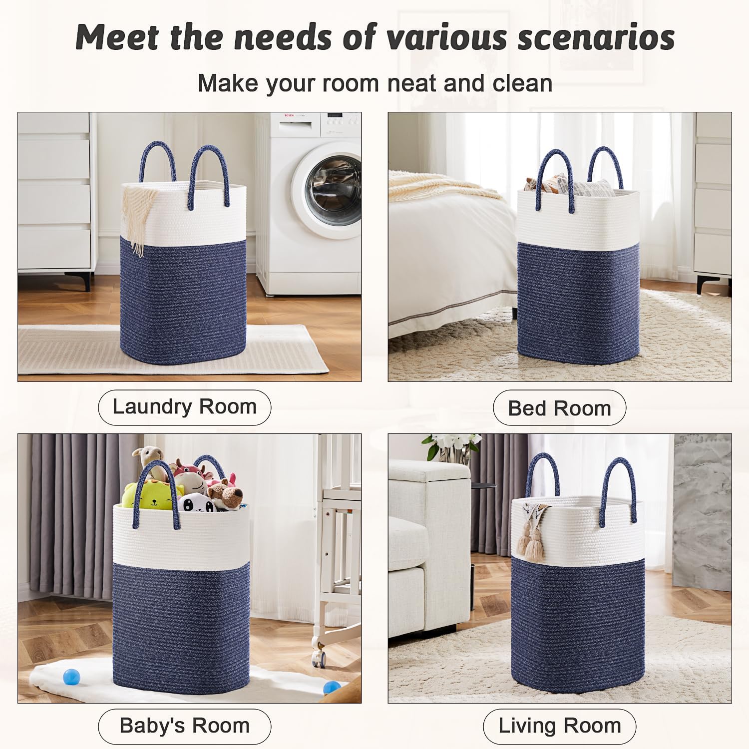Laundry Basket,Woven Cotton Rope Laundry Hamper,Versatile Storage for Dirty Clothes,Baby Toys,and Blankets in Bathroom, Nursery,and Living Room (Blue, 60L)