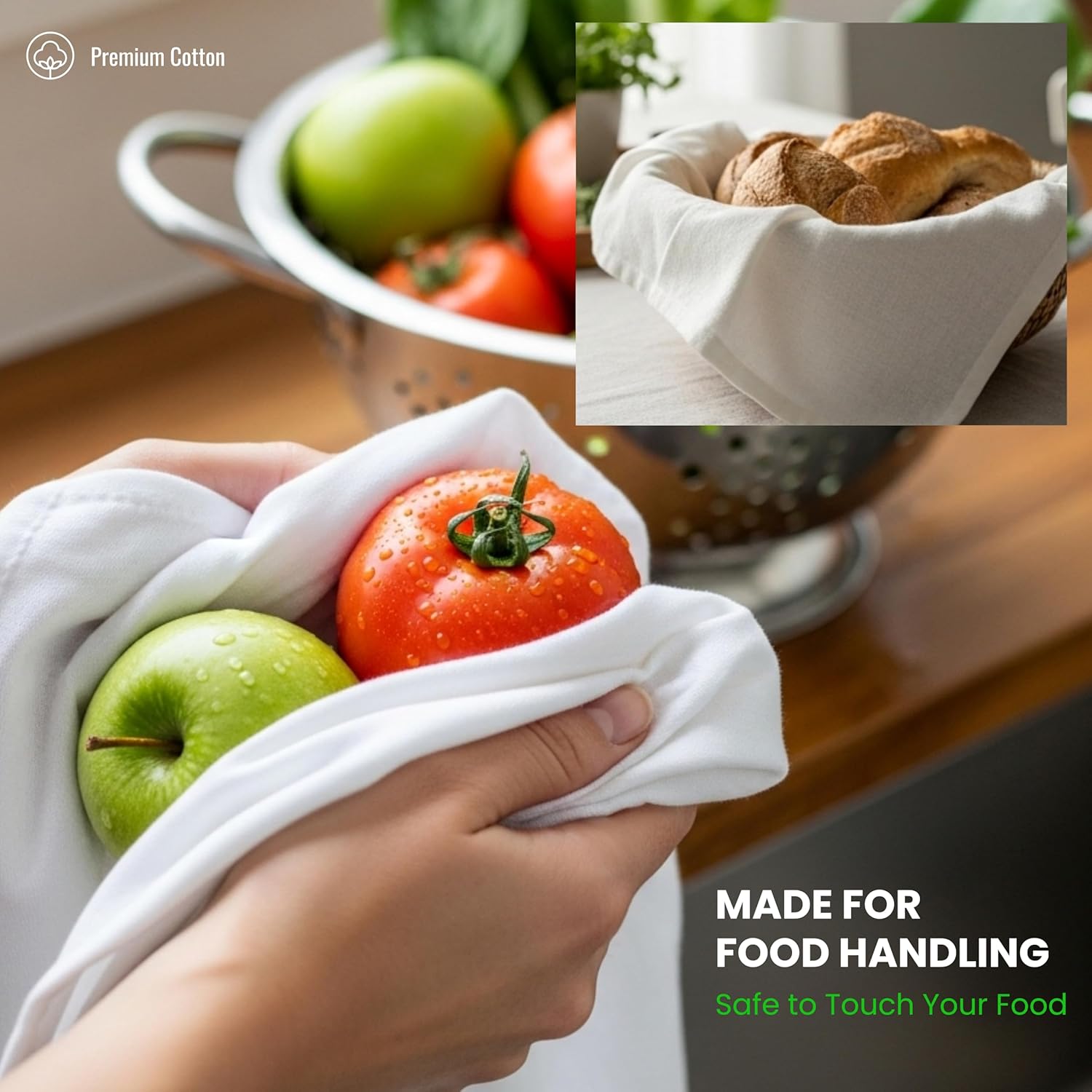 - MULTIPURPOSE: Their lint-free pure ring-spun cotton composition makes them perfect for drying glassware, hands and surfaces. Moreover, they excel at tasks like cheese straining, salad spinning, and even serving as reliable dough covers for baking.
