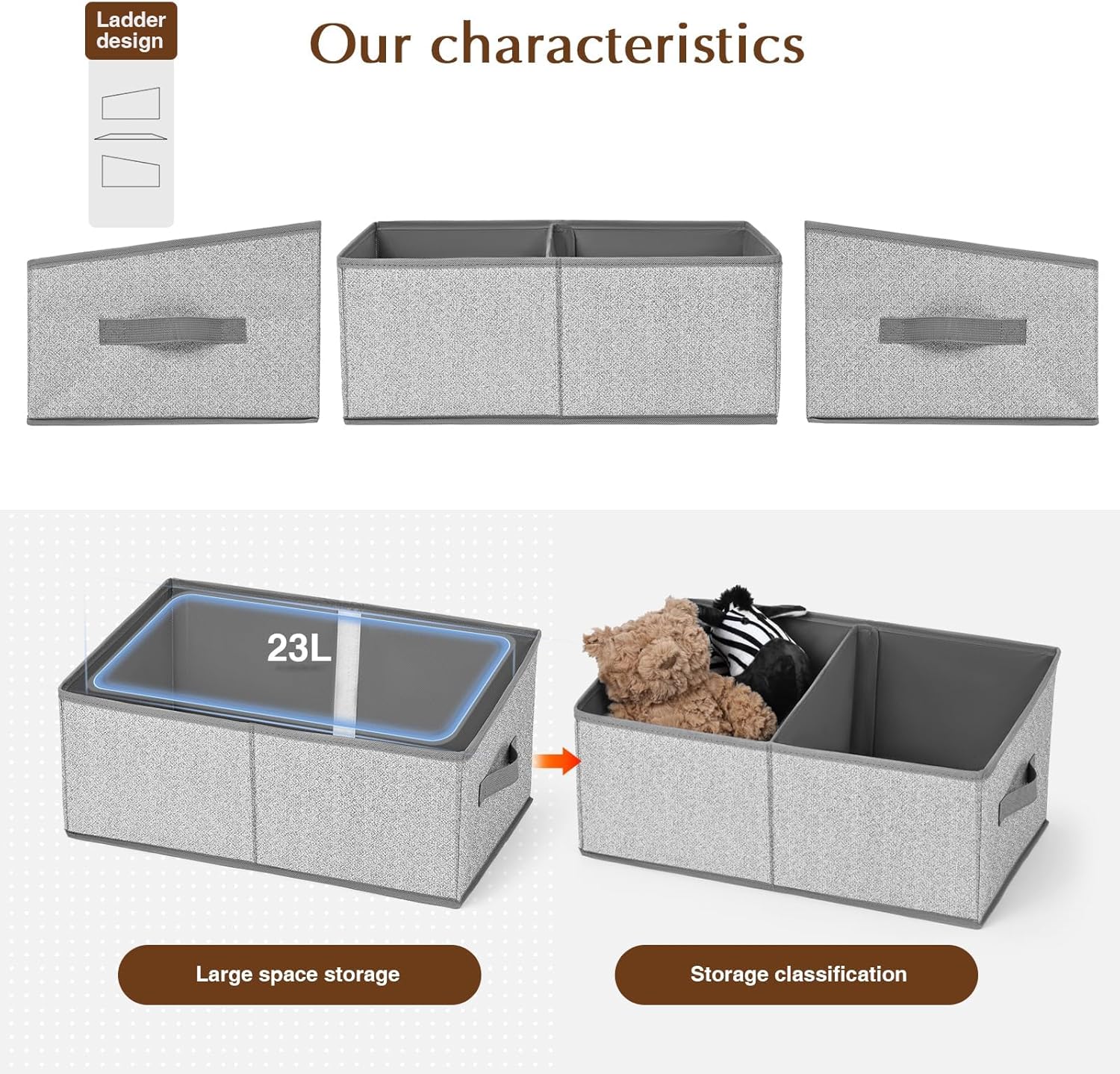 - 【Foldable & Detachable】These fabric bins can be easily folded into a flat state, saving space when not in use. These baskets for closet organization have partitions, and you can use the fabric storage bin to store clothes and daily necessities without confusion. Get rid of the regular cardboard box