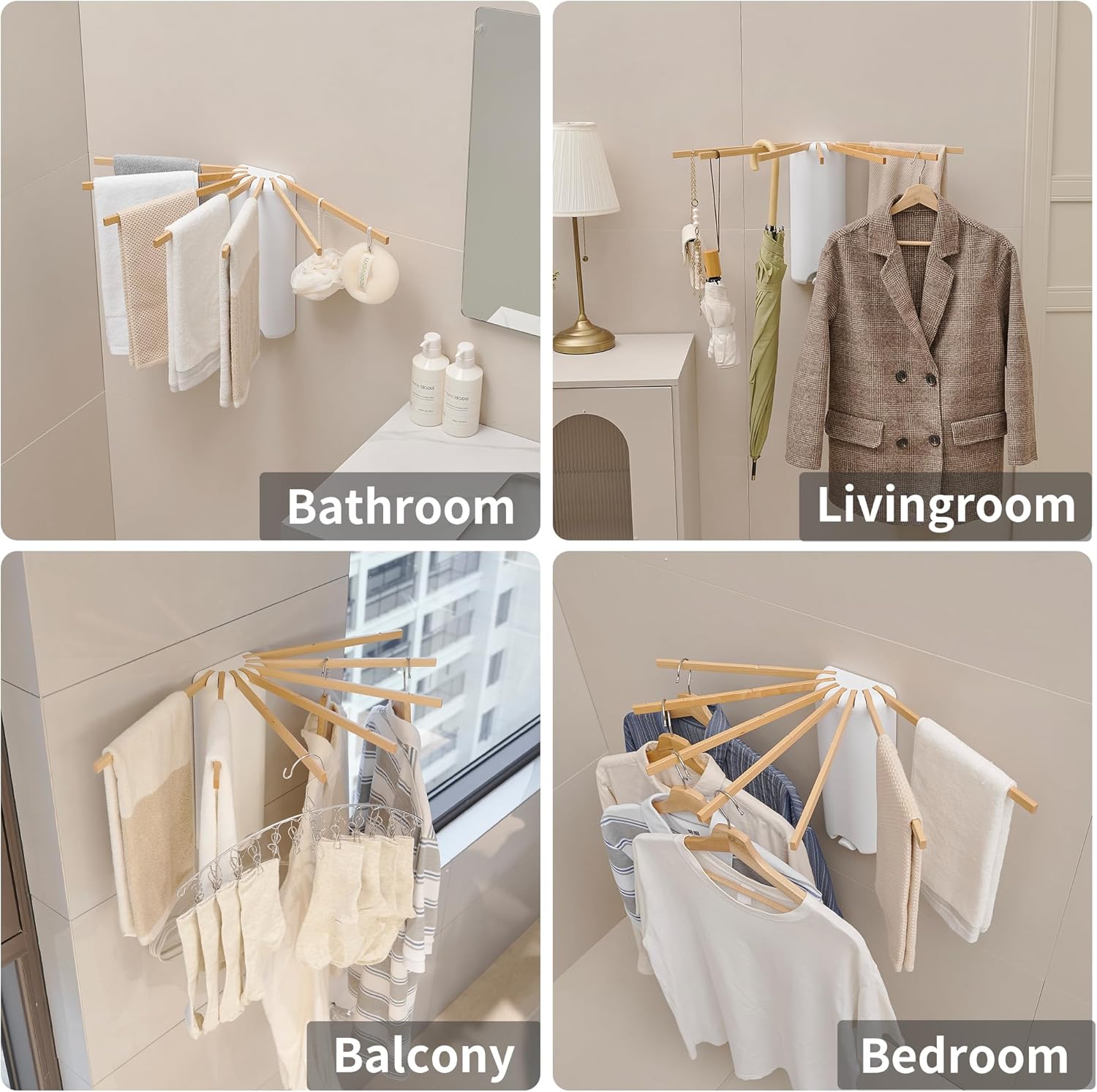 - Foldable Design:Clothes drying rack foldable has 7 adjustable rods and 2 grooves each rods, you can expand the number of arms you need according to the space and usage needs;The adjustable design of this drying rack clothing wall mounted allows for enhanced airflow, facilitating quicker and more efficient drying