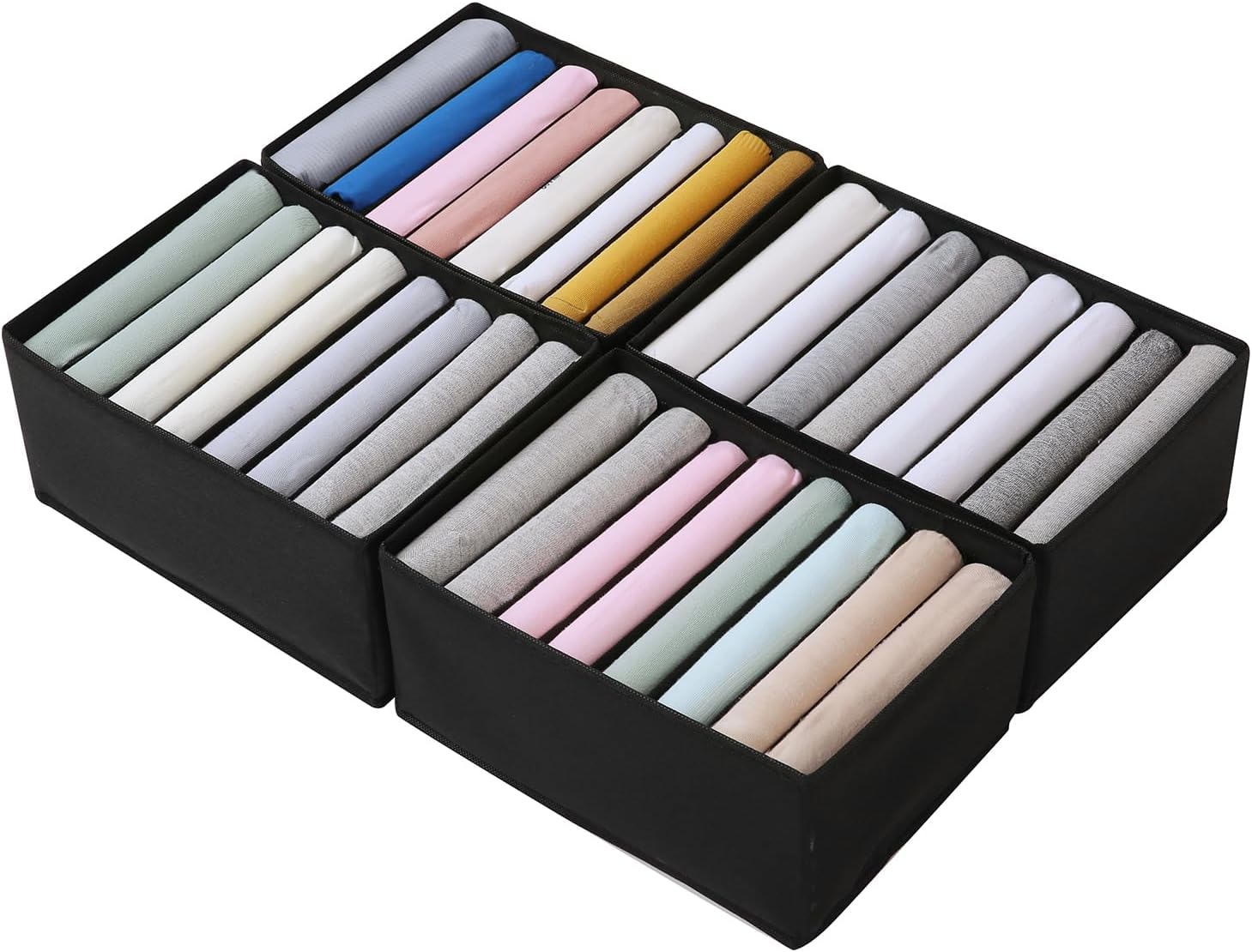 Qozary 4 Pack Drawer Organizers for Clothing, 8 Grids Foldable Closet Organizers and Storage Bins for Bedroom, Dresser Organizer Boxes for Thin T-shirts, Tank Tops (Black, Upgrade Height)
