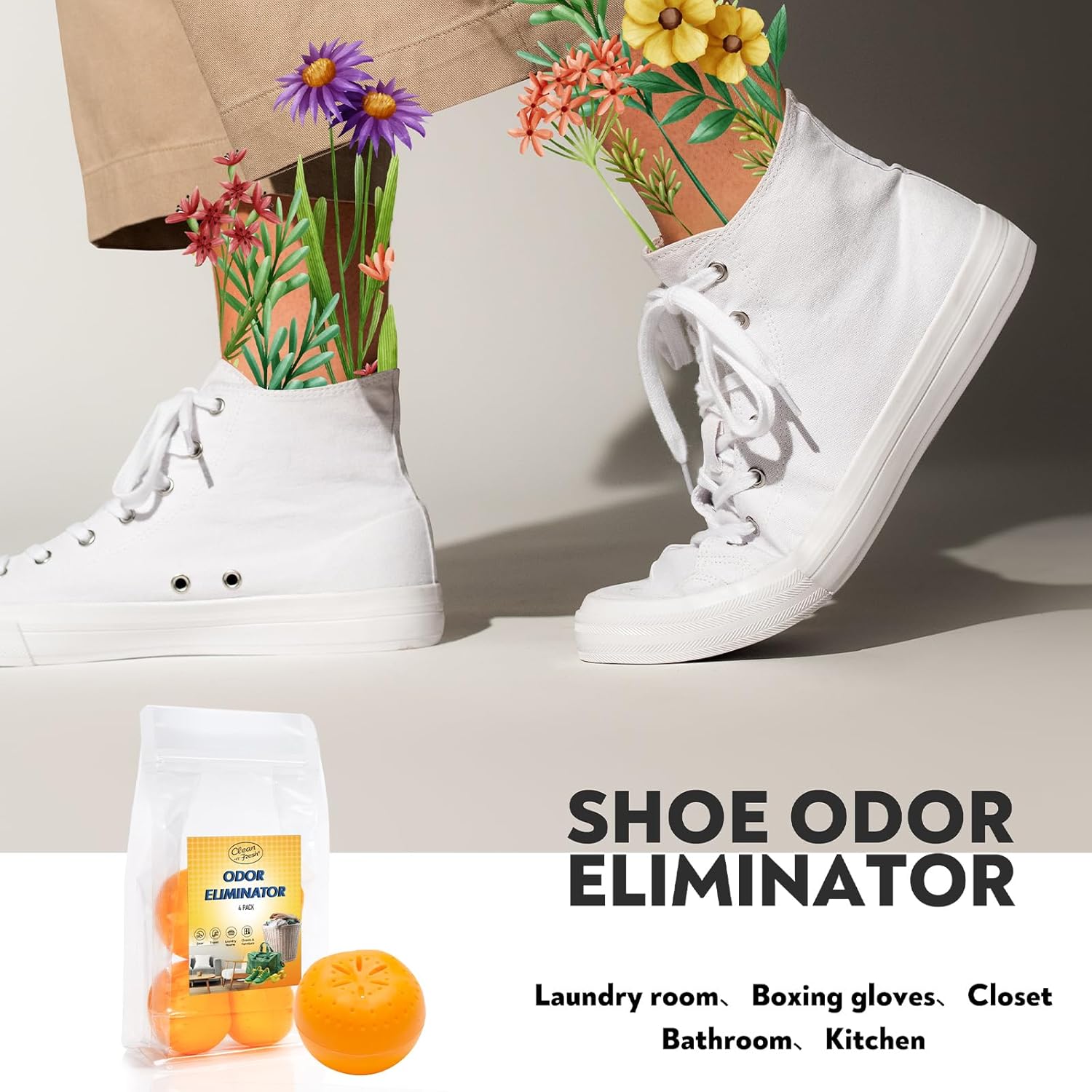 4 Pack Baking Soda Deodorizers, Shoe Deodorizer Balls, Air Freshener for Home, Odor Eliminator for Closets Bathroom Pets, Up to 80 Days