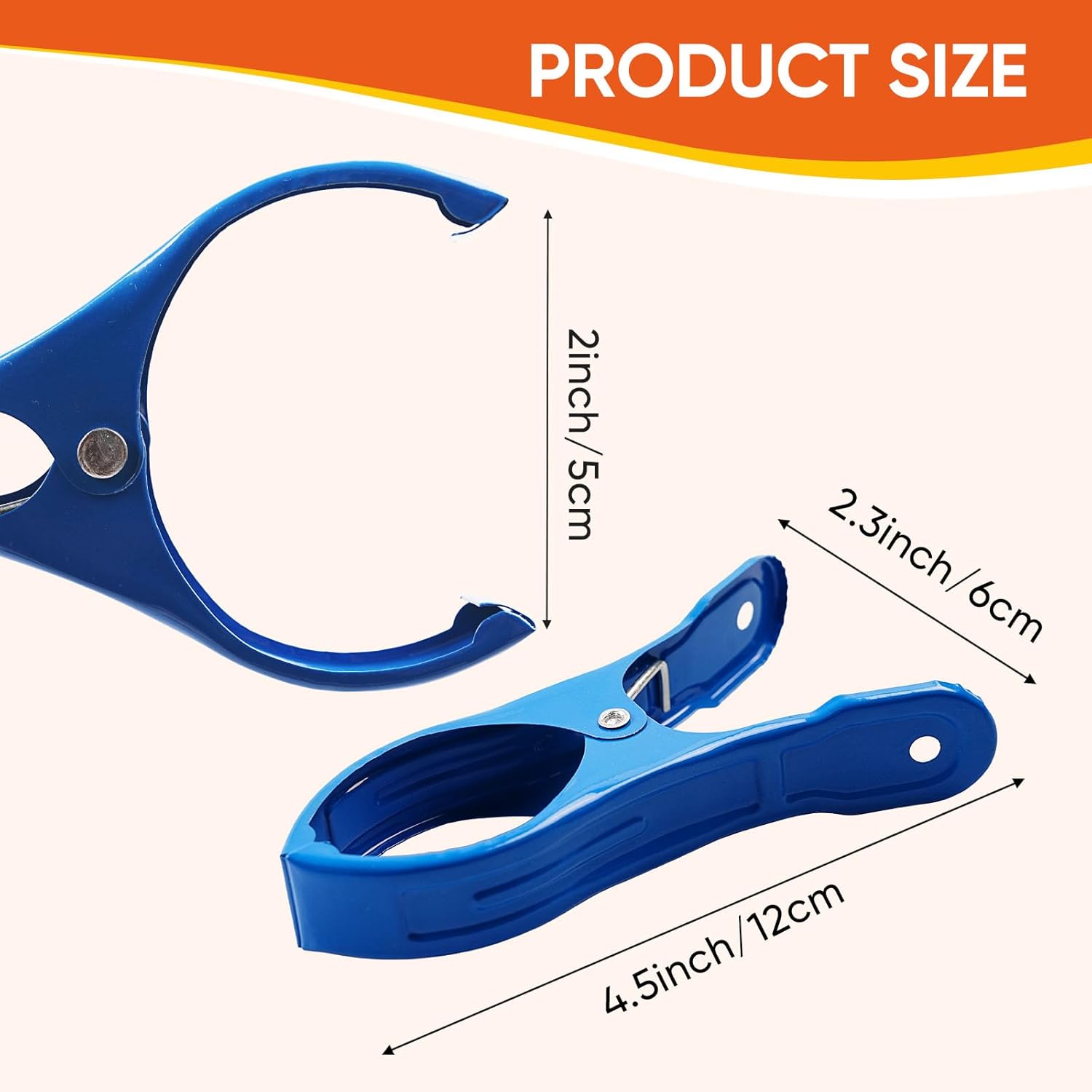 - Size: The beach clips are 4.5 inches long with a maximum opening of 2 inches, each one weighs only 25 grams, the thicker spring can provide good strength to clip towels, clothes and other items, effectively preventing items from being blown away by heavy wind and rain. The enlarged opening will fit most beach chairs, cruise ship railings and more.