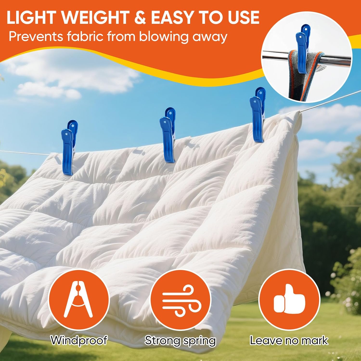 - Strong beach towel clips: The beach towel clips have strong clamping ability to prevent hanging items from falling even in strong windy. the pool cover clips could stop the leaves falling into your pool , And the chair clips for beach towels cruise are designed with smooth edges which clamp securly without damaging fabric.