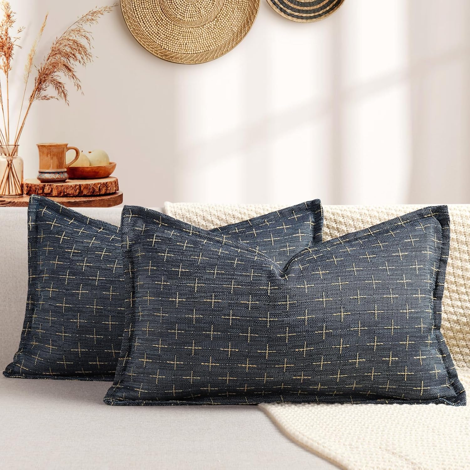 ZWJD 12x20 Pillow Covers Set of 2 Soft Polyester Textured Pillow Covers with Stylish Flange Edge Cozy Farmhouse Throw Pillows for Couch Bed Sofa Living Room