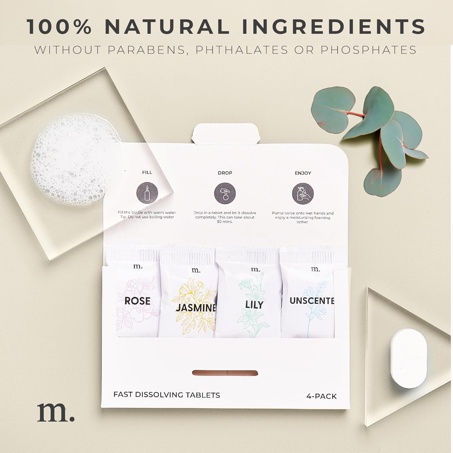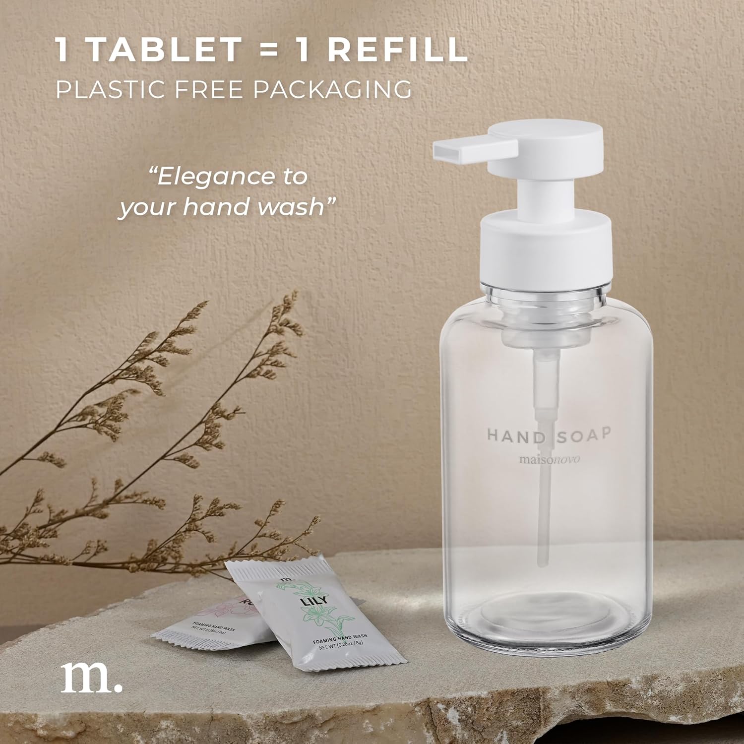 - Gentle on the Planet: Each Refillable Foaming Hand Soap Dispenser + Foaming Soap Tablets replaces 4-12 plastic bottles, reducing plastic waste by 20 to 50 bottles per household a year.