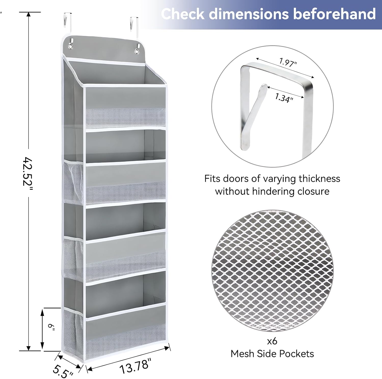 - 35 LBS LARGE LOAD CAPACITY & SPACE SAVING: Making of non-woven fabric and featuring with 4 roomy pockets (up to 14.17" /36 cm long) and 6 additional mesh side pockets, this Over the Door Organizer Storage thoughtfully expands storage space, making it an ideal space maximizer for any room