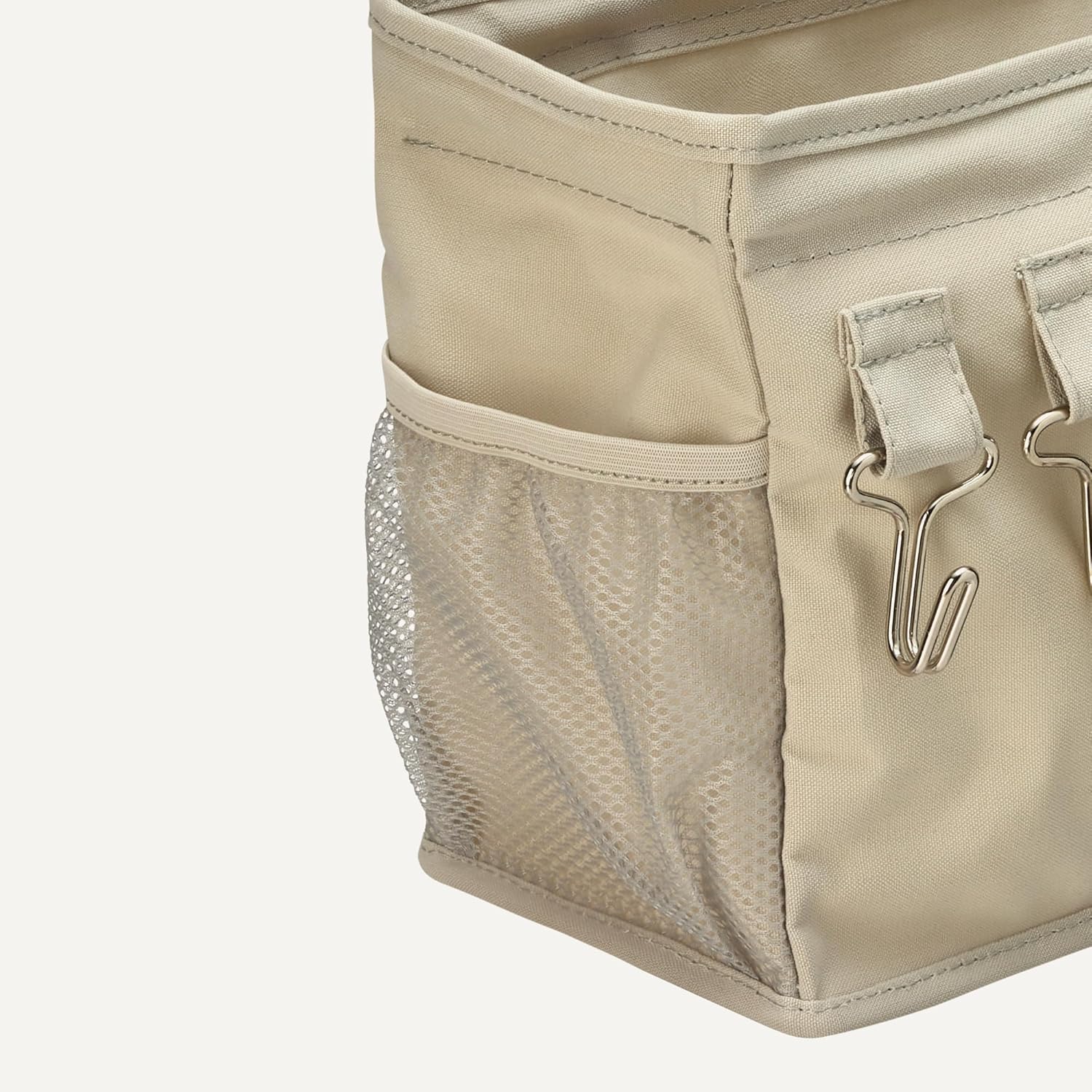 Amazon Basics Bedside Caddy Hanging Storage Organizer, 4.72 x 14.57 x 7.87 in, Linen, Dark Grey