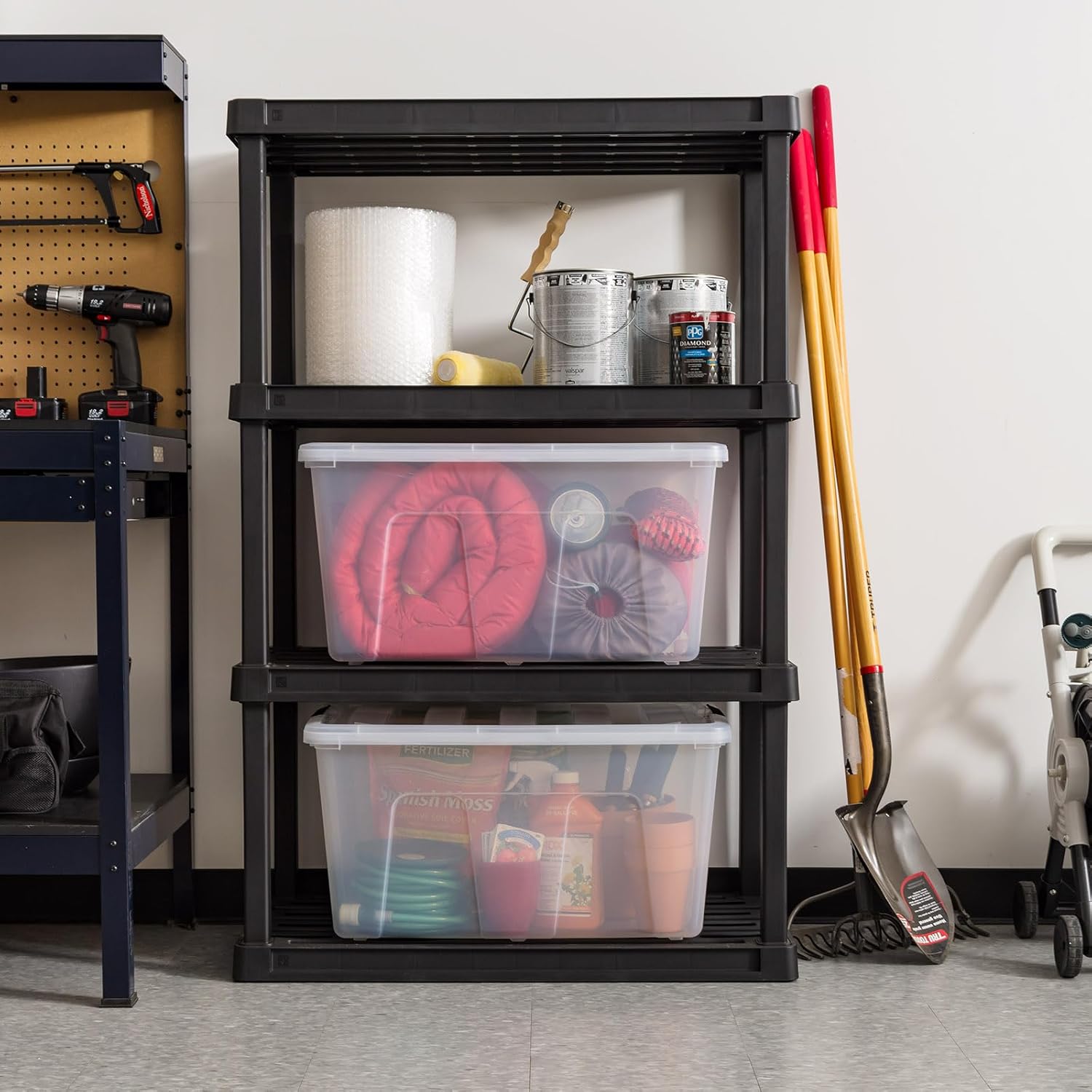 IRIS USA 94 Qt Stackable Plastic Storage Bins with Lids, 2 Pack - BPA-Free, Made in USA - See-Through Organizing Solution, Latches, Durable Nestable Containers, Secure Pull Handle - Clear