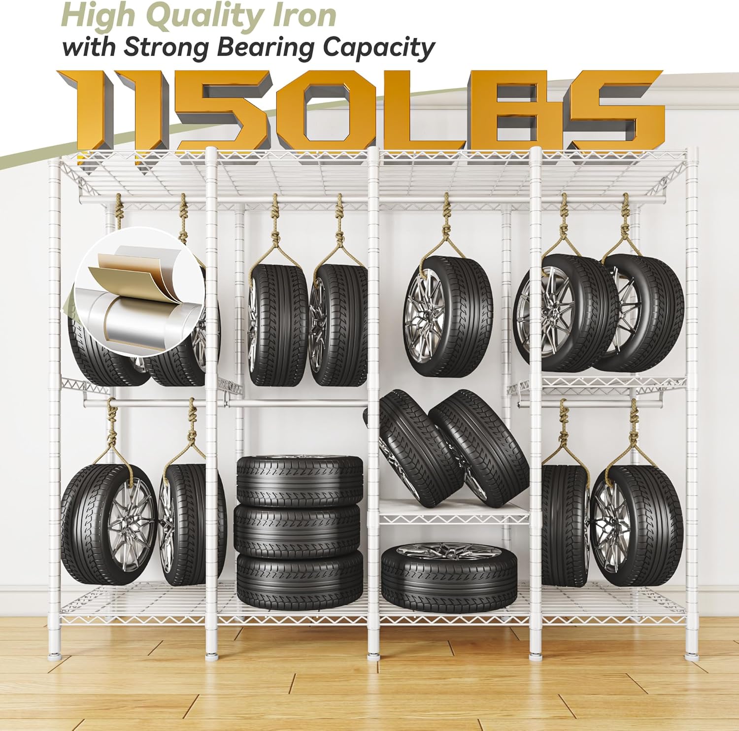 - 【1150LBS Clothing Rack】The heavy duty clothes rack has 6 shelves and 5 hangers. Single hanging rod can support up to 77LBS, the longest hanger can hold 132LBS. Each shelves can hold up to 88LBS, which can hold at least 2 24" suitcases.