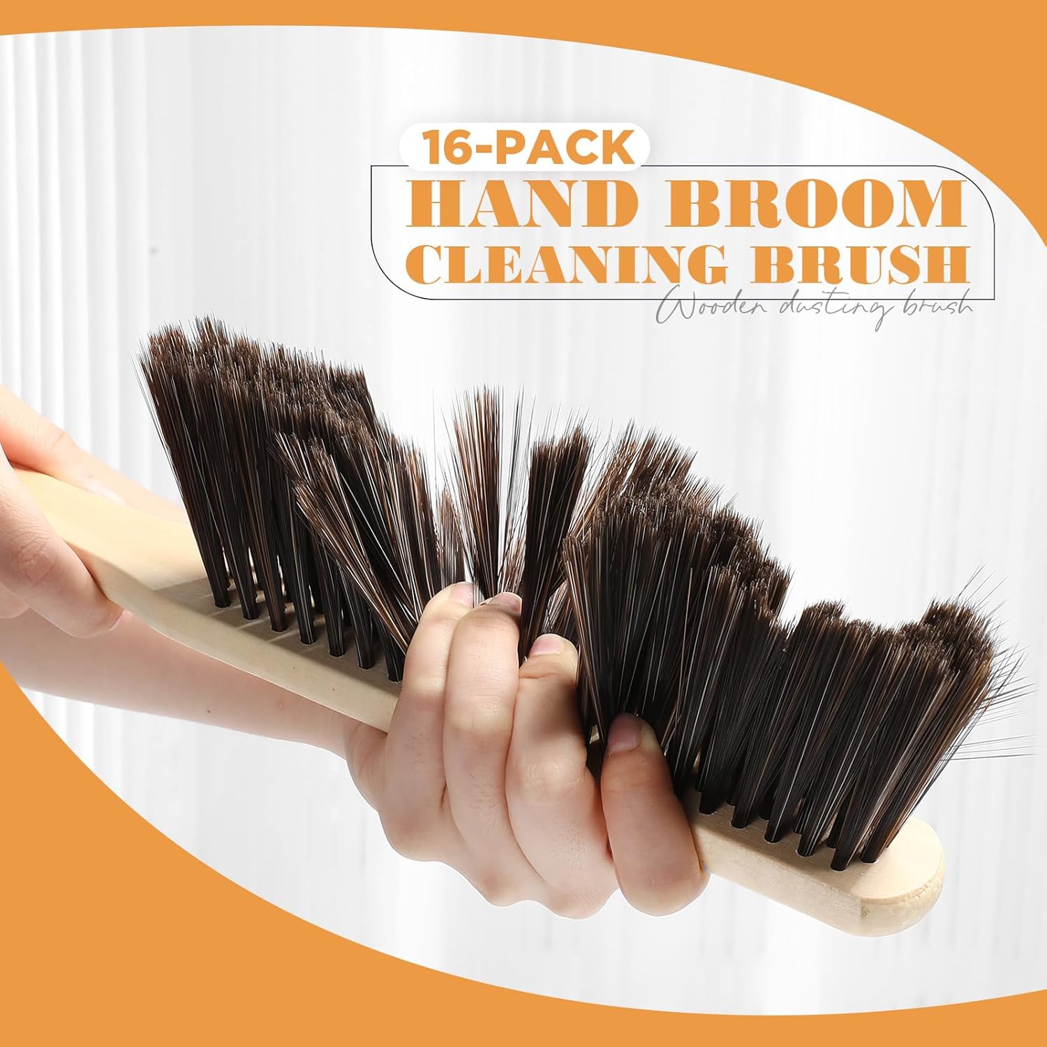 Tioncy 16 Pieces Wooden Dust Brush Bulk Hand Broom Bench Soft Bristle Cleaning Outdoor Furniture Brushes with Long Wood Handle for Cleaning Car Bed Sofa Fireplace Couch Clothes