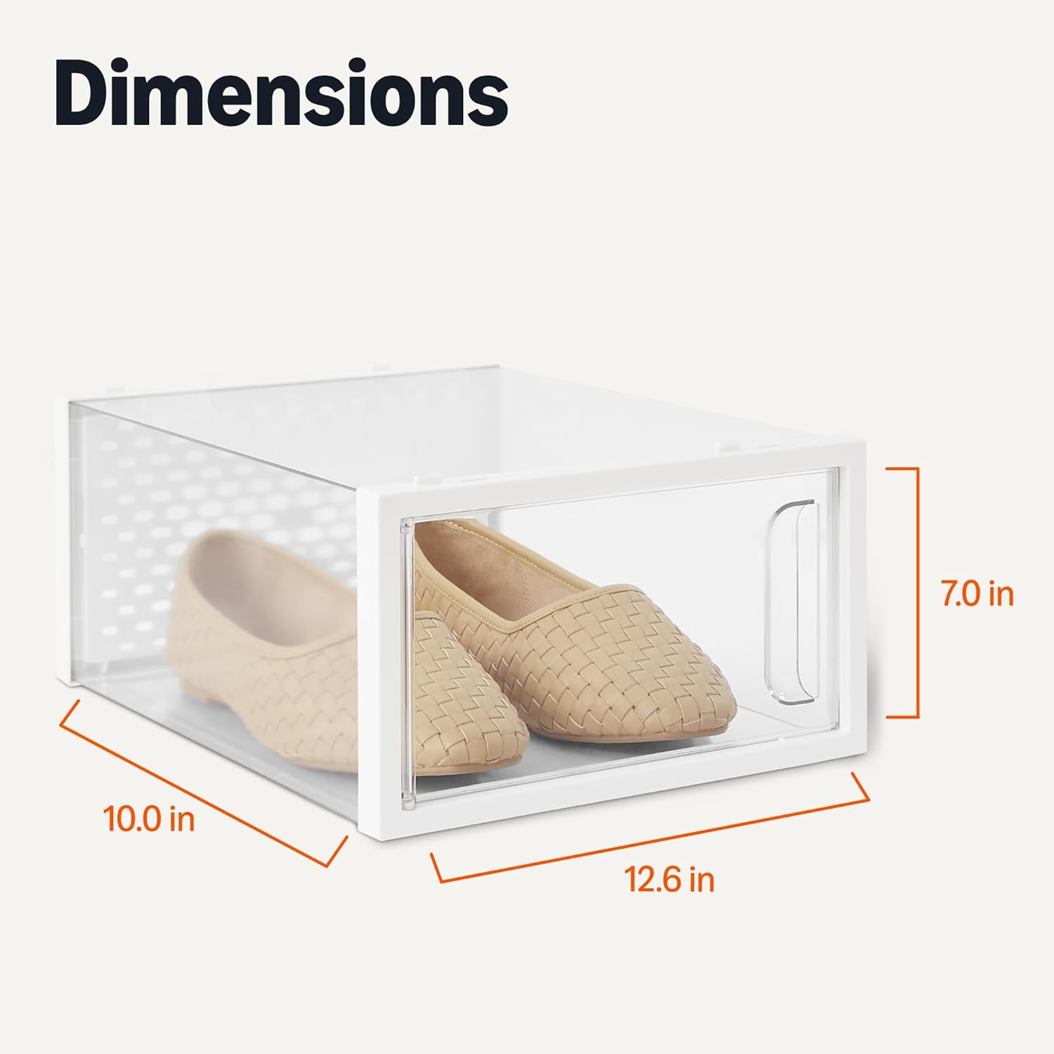 Amazon Basics Stackable and Foldable Clear Shoe Storage Organizer Box, Large, Pack of 12