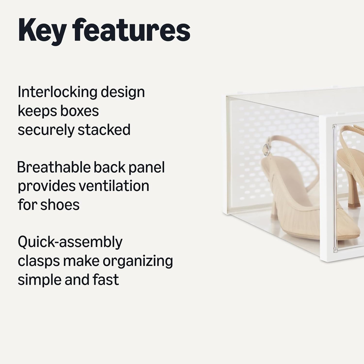 - 12-pack of stackable, interlocking shoe organizer boxes for versatile, space-saving storage — ideal for shoes, clothing, handbags, toys, accessories, and other household essentials