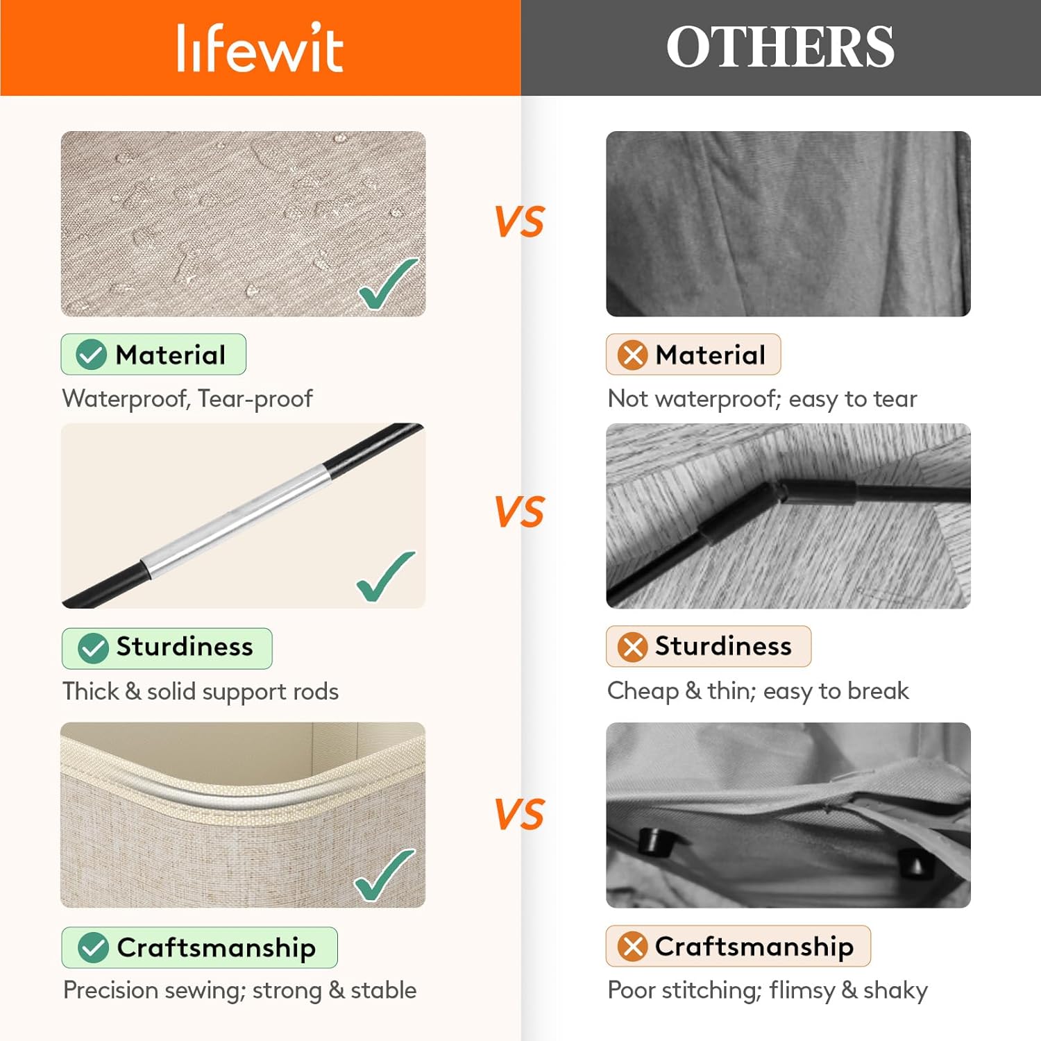 Lifewit 80L Large Tall Laundry Hamper, Collapsible Laundry Basket with Handles, Foldable Clothes Hampers for Laundry, Portable Dirty Clothes Hamper for Dorm College Bedroom Bathroom, Beige