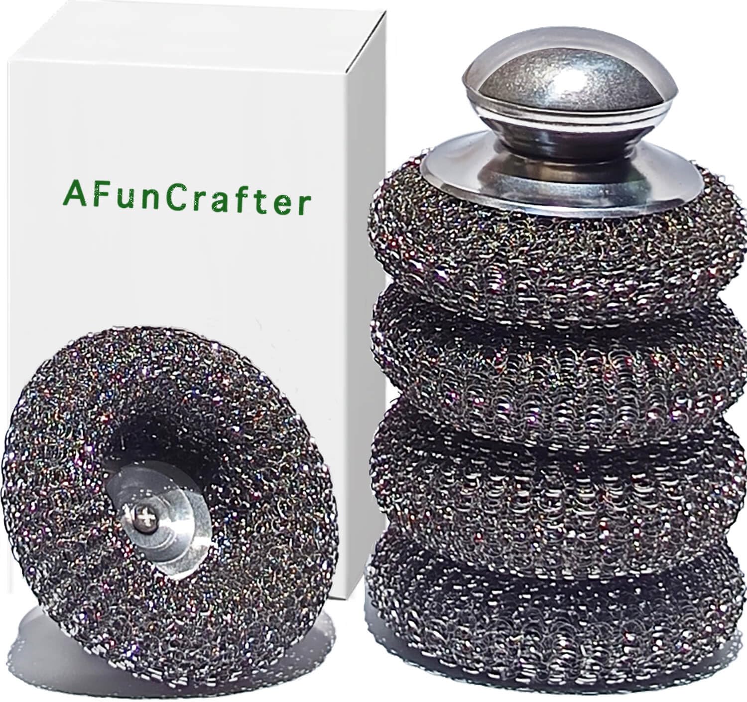 - Packaging Includes: 2 stainless steel wool scrubbers with handles & 3 replacement stainless steel wire sponge pads - durable scouring pads for heavy-duty cleaning