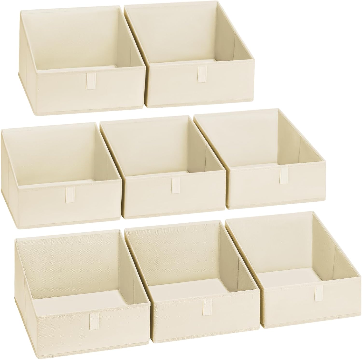 - 【Trapezoidal Design】These storage cubes are Trapezoid design that makes finding things convenient, also allows easy access when putting on the highest shelf. These are ideal closet bins for clothes, bags, shoes, towels, blankets, toys, dolls, and more