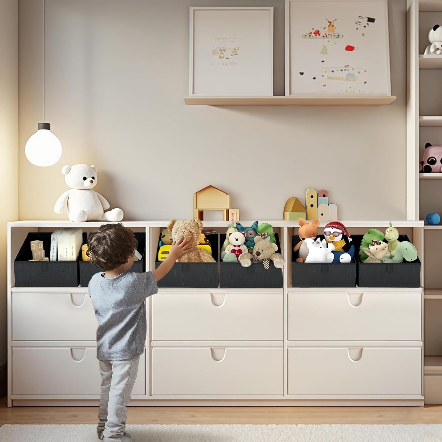 - 【Trapezoidal Design】These storage cubes are Trapezoid design that makes finding things convenient, also allows easy access when putting on the highest shelf. These are ideal closet bins for clothes, bags, shoes, towels, blankets, toys, dolls, and more