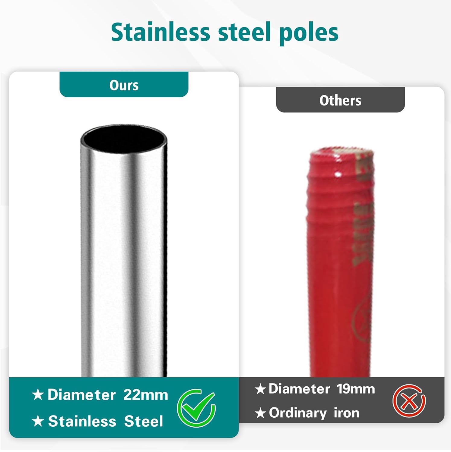 - DURABLE STEEL LONG HANDLE: Unlike the 19mm common handle bar, ours is a 22mm thickened bar that can be used for a long period of time without breaking. 4-section interlocking design for easy storage or custom height adjustment, loop on end of handle makes it easy to hang