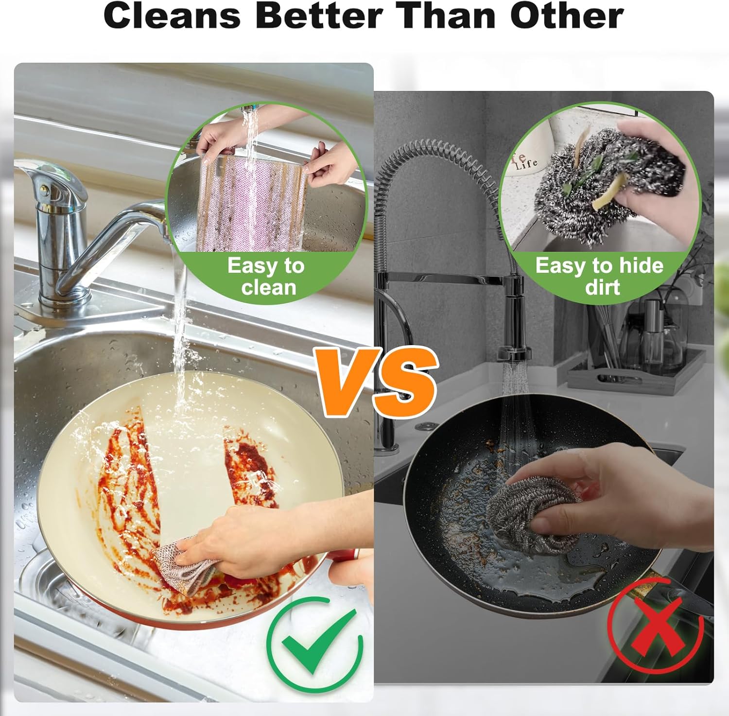 - Double-Sided Design:Jeymei wire dishwashing rag features a double-sided design, made of high-quality materials and precision stitching. Our multipurpose wire miracle cleaning cloths can be used wet or dry to easily clean surfaces like sinks, stoves, and countertops.