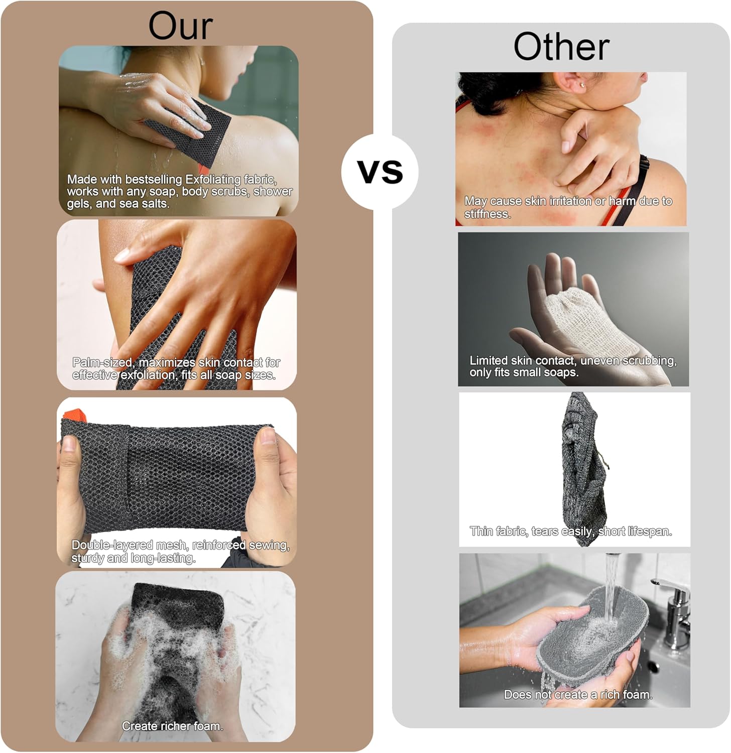- Rich Lather Creation: The textured pouch quickly produces a rich, luxurious lather, similar to a loofah, enhancing your shower experience while conserving soap. The ergonomic palm-size design ensures ease of use.
