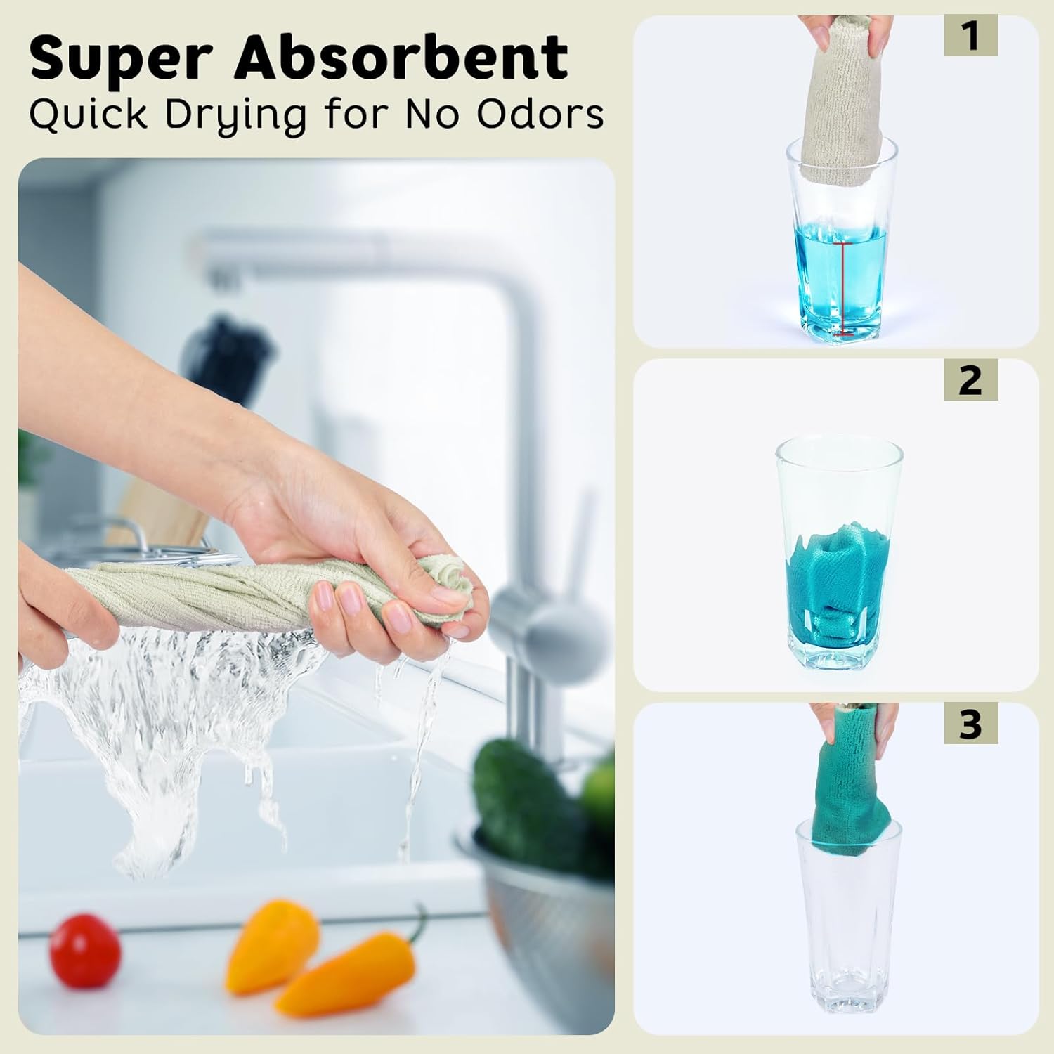 - Instant SOAK UP - Absorbing 4 times more than cotton cloths and 5 times their weight in water, these microfiber cleaning cloths are the all-purpose rags for glass, dishes, automotive,and smooth surfaces.They quickly tackle messes, oils, and liquids, outperforming sponges&conventional towels in speed and efficiency