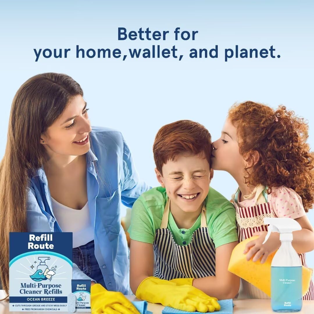 All Purpose Cleaner Refill β 12 Tablets (12 x 16 Fl oz) Multipurpose Cleaners -Can Make 192 Fl oz Bathroom Cleaner Spray Cleaning Tablets Refill - Vegan, No Plastic - Ocean Breeze