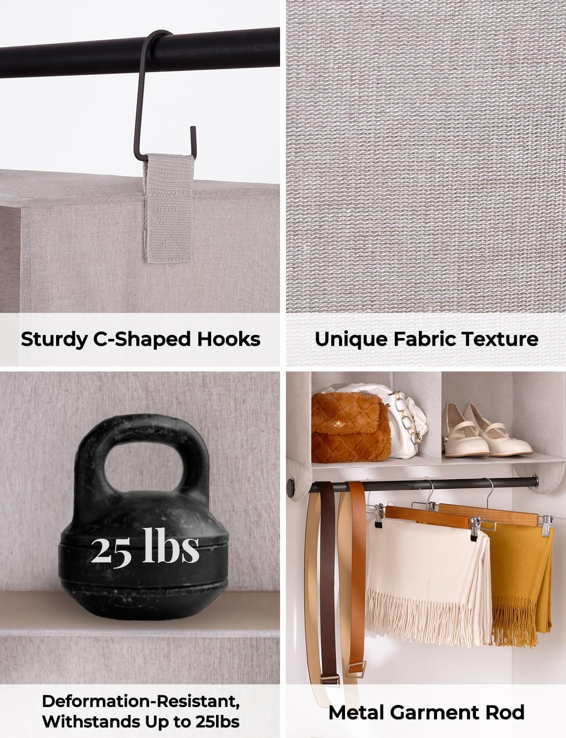 StorageWorks Hanging Closet Organizer with Metal Rod, 4-Section Closet Organizers and Storage, Collapsible Hanging Shelves for Wardrobe Organizer, Nursery, Bedroom, Light Khaki