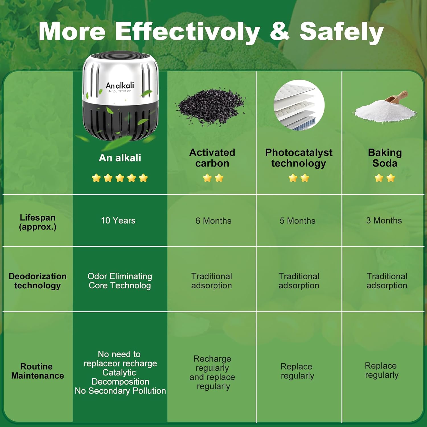- Swift Odor Elimination:Traditional deodorizers only mask smells, but our deodorant box,featured by AOP alkali,solve odor molecules at their core.Whether it’s kitchen odors,pet smells,or shoe-cabinet stench,it rapidly breaks them down.Compared to charcoal deodorizers that passively adsorb, our BWS alkali technology prevents odor recurrence.It eliminates over 92% of common odors within hours.Ideal as a fridge odor eliminator, closet deodorizer odor eliminator, or general home odor eliminator.