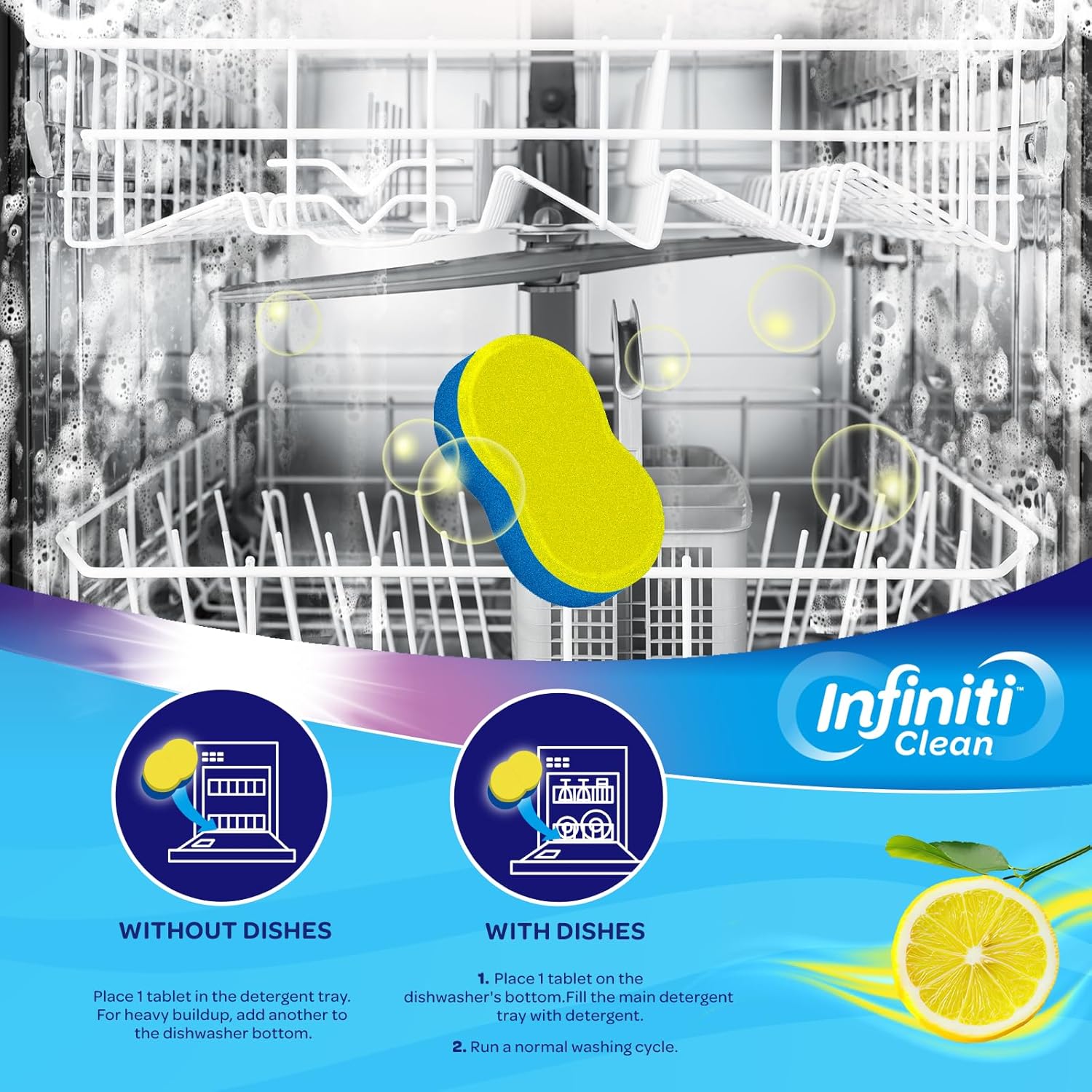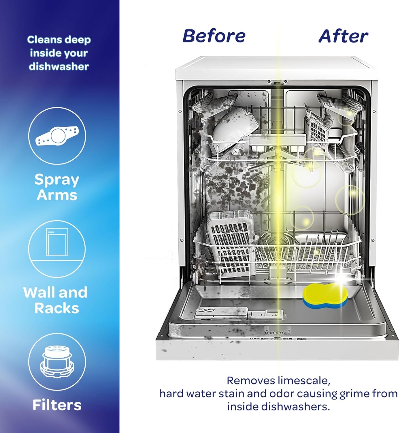 - Odor Elimination & Freshness: Infused with our dishwasher cleaner and deodorizer tablets, your dishwasher will be rid of unpleasant odors and left with a clean, fresh scent after every use