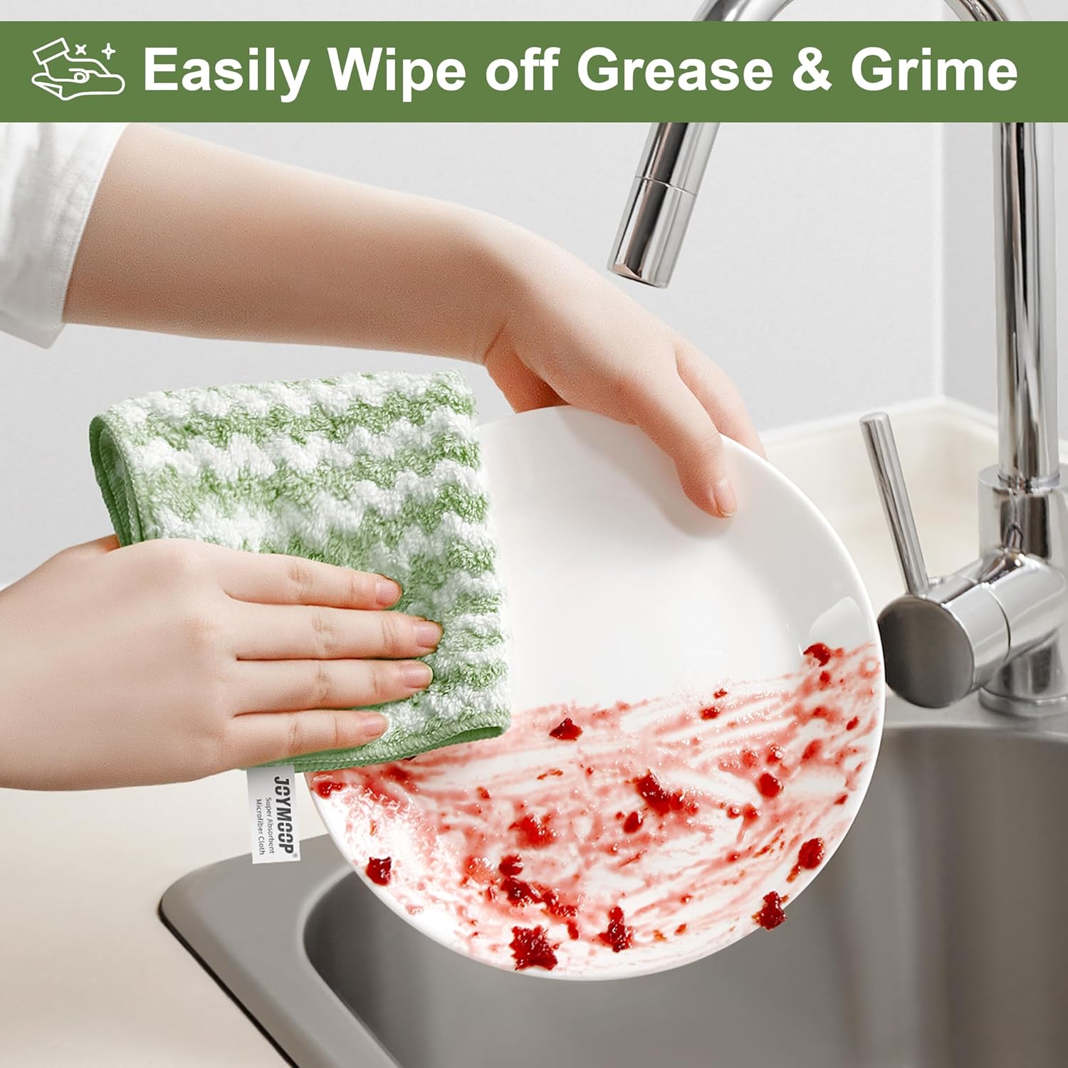 JOYMOOP Microfiber Cleaning Cloths – 18 Pack, 10" x 10", Green – Reusable, Lint-Free, Super Absorbent Towels for Kitchen, Car, and Household Cleaning
