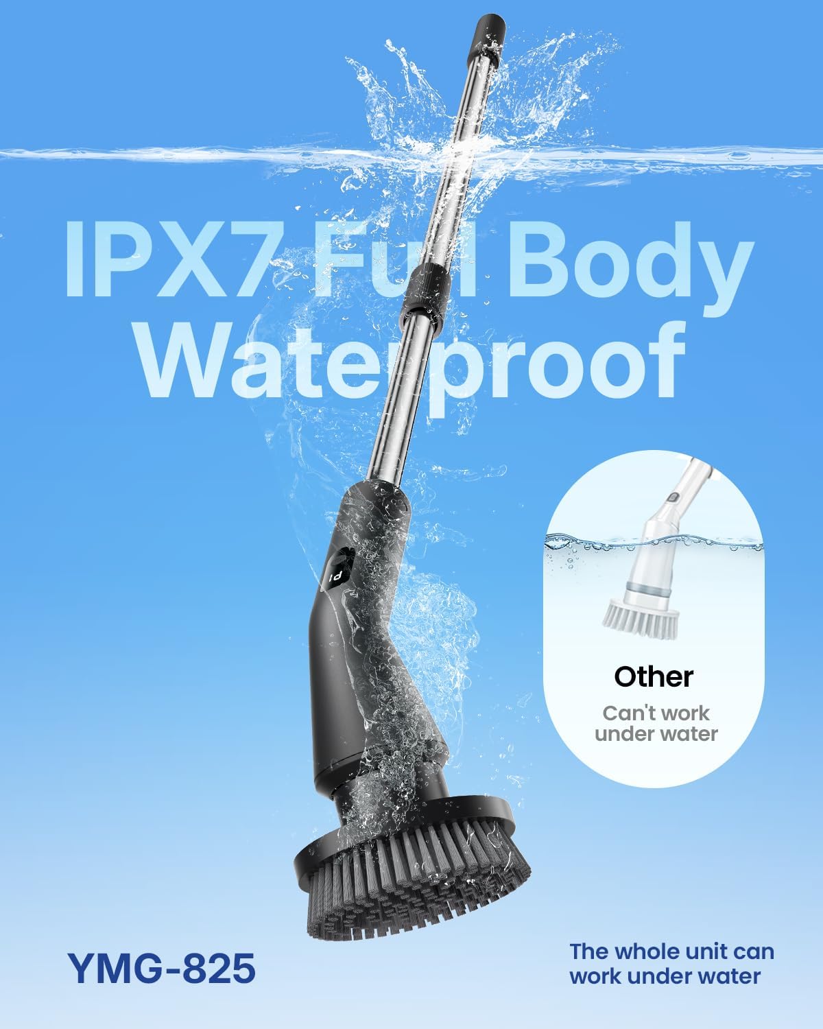 Leebein Electric Spin Scrubber, 2025 Upgraded Cordless Cleaning Brush Scrubber, IPX7 Waterproof Power Scrubber with 7 Brush Heads, Extended Handle and 2 Speeds for Bathroom Shower Bathtub Floor