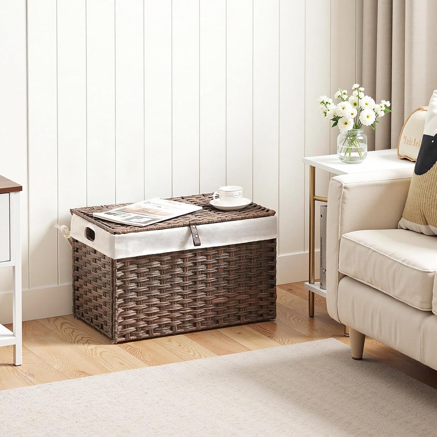 HOOBRO Storage Basket with Lid, 17.2 Gallon (65L) Wicker Basket, Handwoven Blanket Storage Basket with Handles, Metal Frame and Soft Lining, Foldable for Bedroom, Laundry Room, Brown BR265CW01