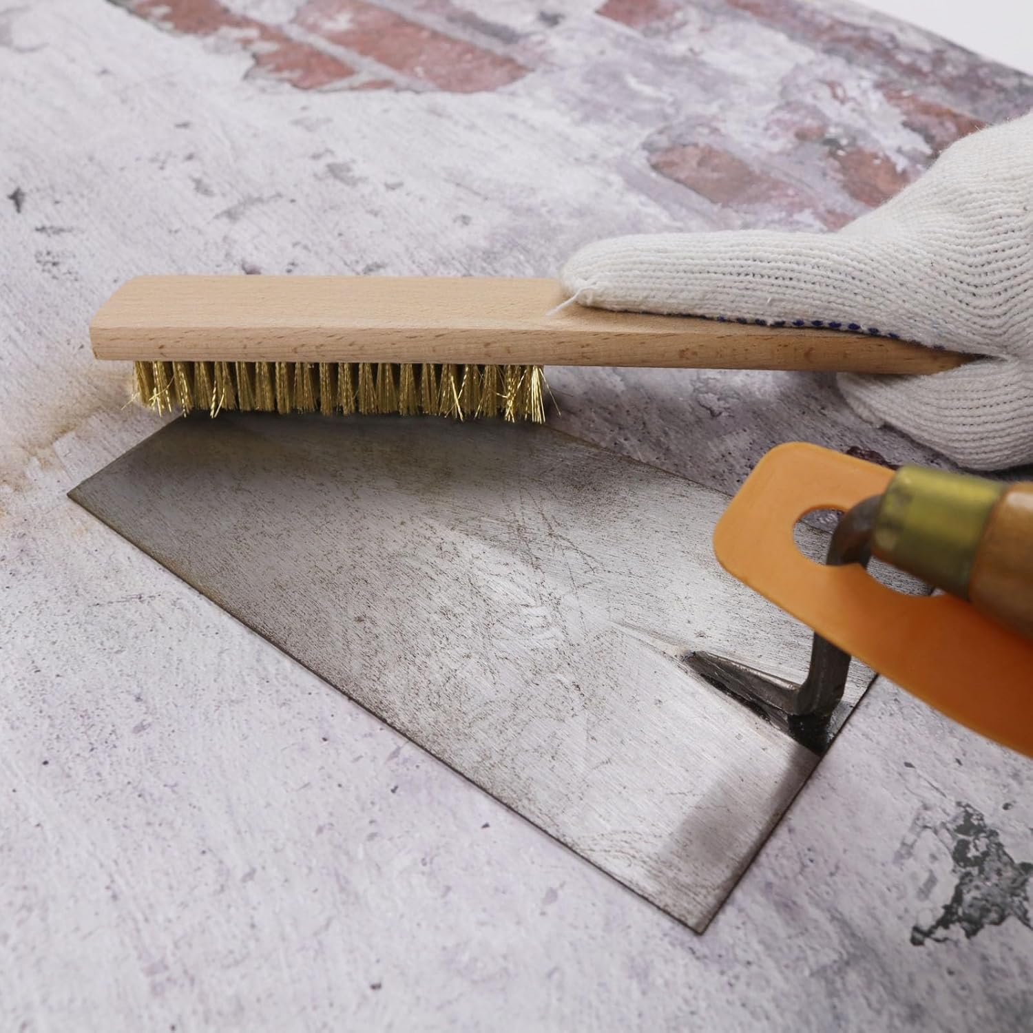 - Premium Brass Bristles: Our brass wire brush features soft brass bristles, making it ideal for cleaning metal surfaces without scratching or damaging delicate items. Perfect for cleaning welding spatter, slag, tool maintenance, and more