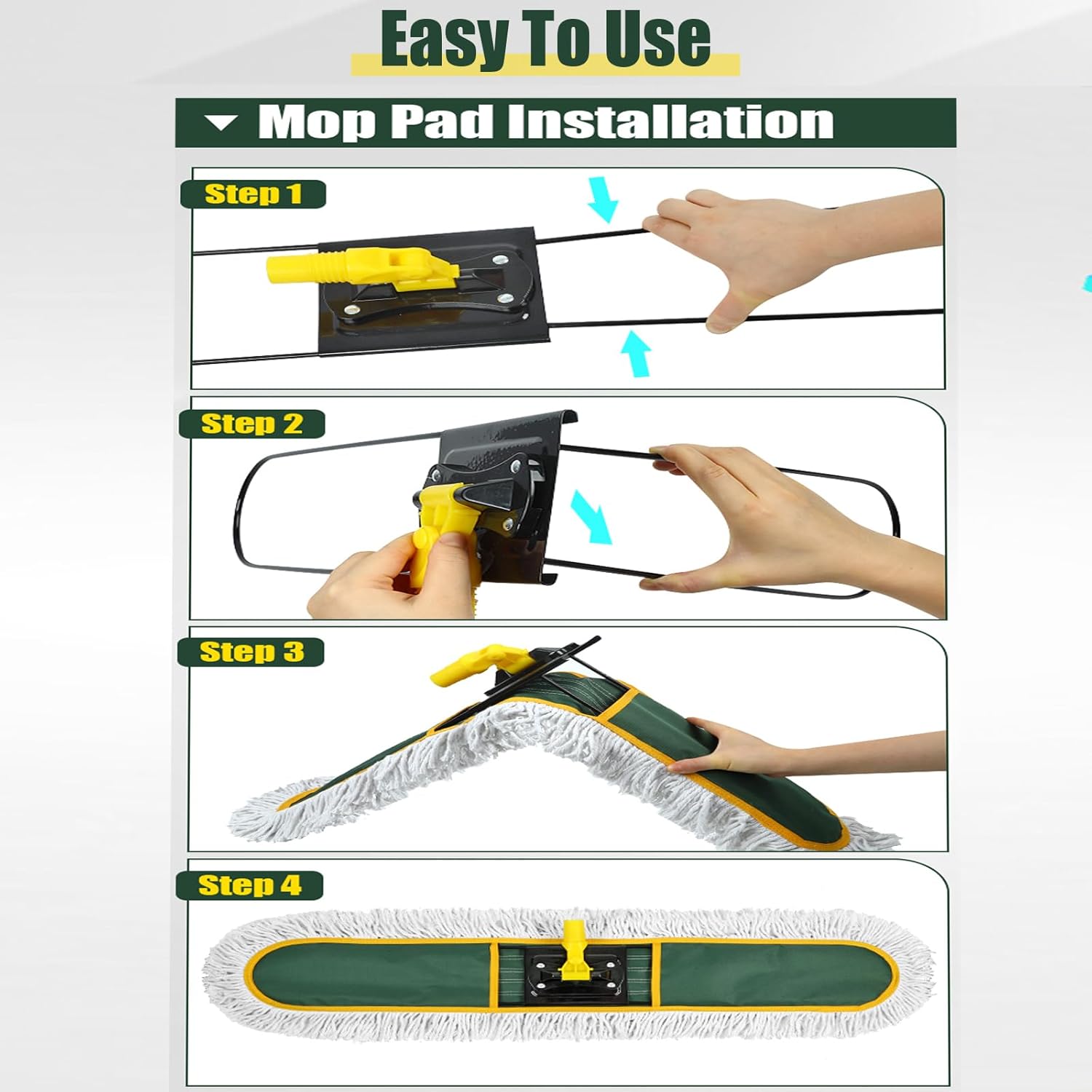 - Fit all kinds of floors - You can use this dust mop to clean tile floors, wooden floors, marble floors, office floors, restaurant floors, kitchen floors, bathroom floors, garages, warehouses and so on. Package including 2 pieces mop pads.