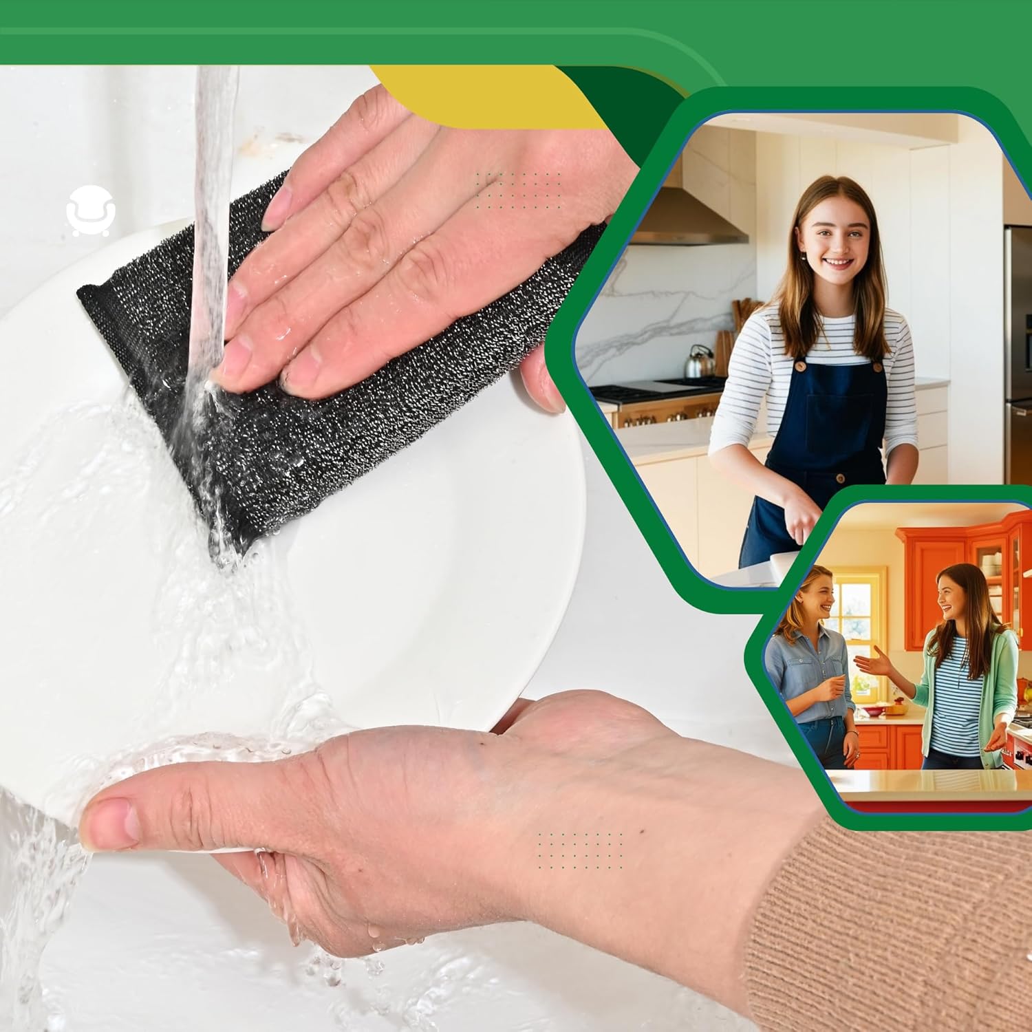 Steel Wool Scrub Sponges Kitchen, Reusable Dish Scrubber Sponge, for Pots, Pans, Gentle and Scratch Free - 12 Pack Black