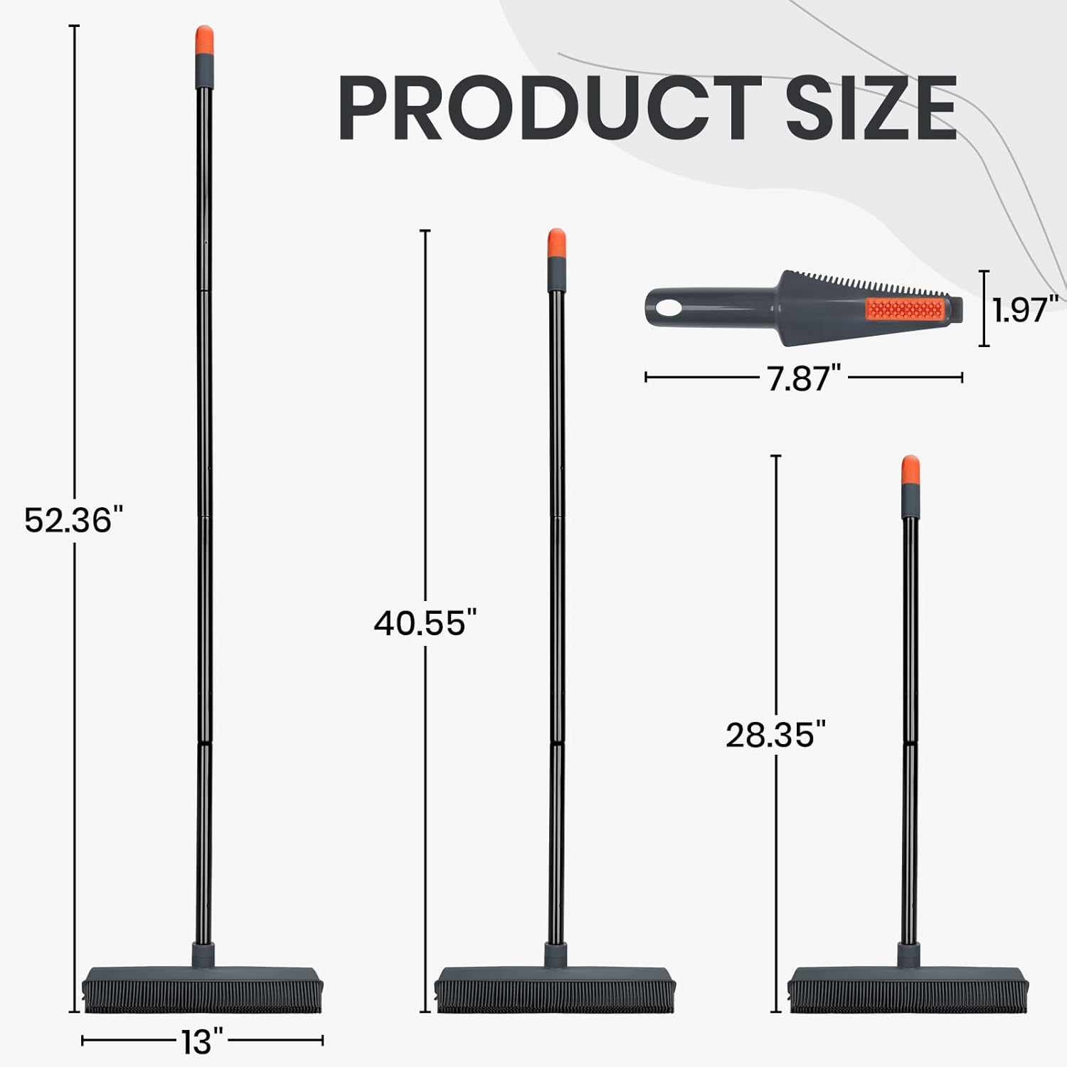 - 【2 in 1 Pet Hair Removal Broom】 Comes with rubber broom with built in squeegee, microfiber cloth, and cleaning brush. Carpet brush effectively get the stubborn hair out the rug, microfiber cloth wipe the floor, and the cleaning brush to remove hair and debris from the rubber bristles. This rubber broom set offer multiple functions in one tool, a must have for any home.