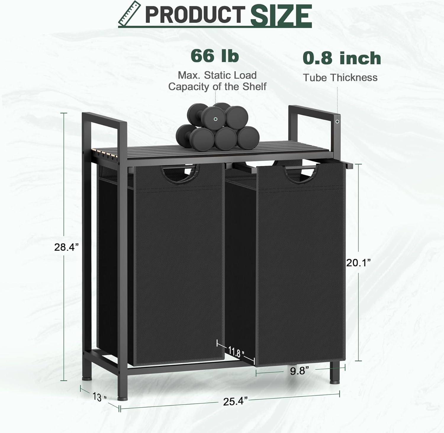 - Construction Design - With 4 adjustable feet, you will not have to worry about stability, and it is also adaptable to different spaces. Adjustable feet protect your floor from scratches. Strong steel frame and water-resistant wood top offer stable support. This laundry hamper comes with detailed instructions manual and all hardware needed, it is easy to assemble.